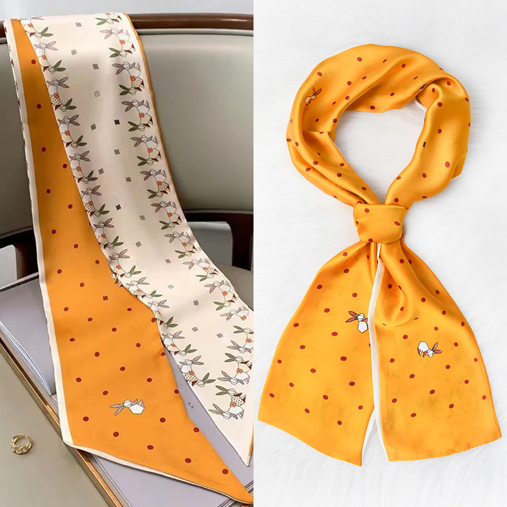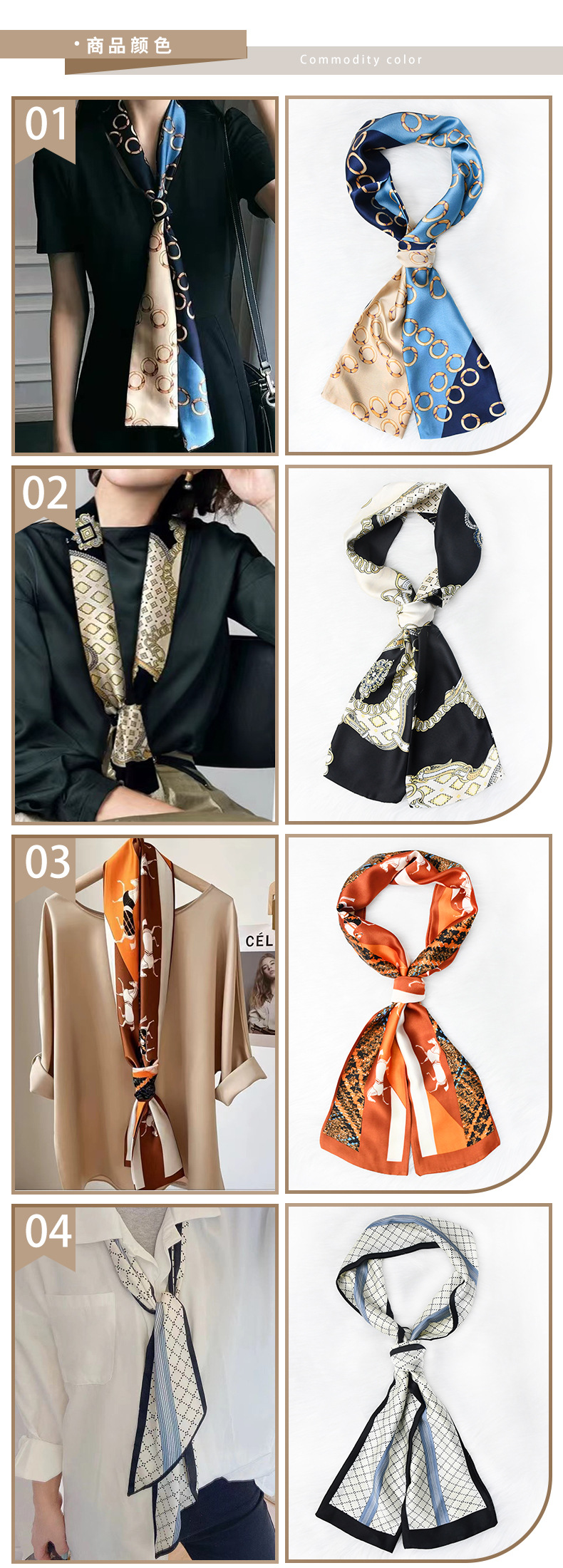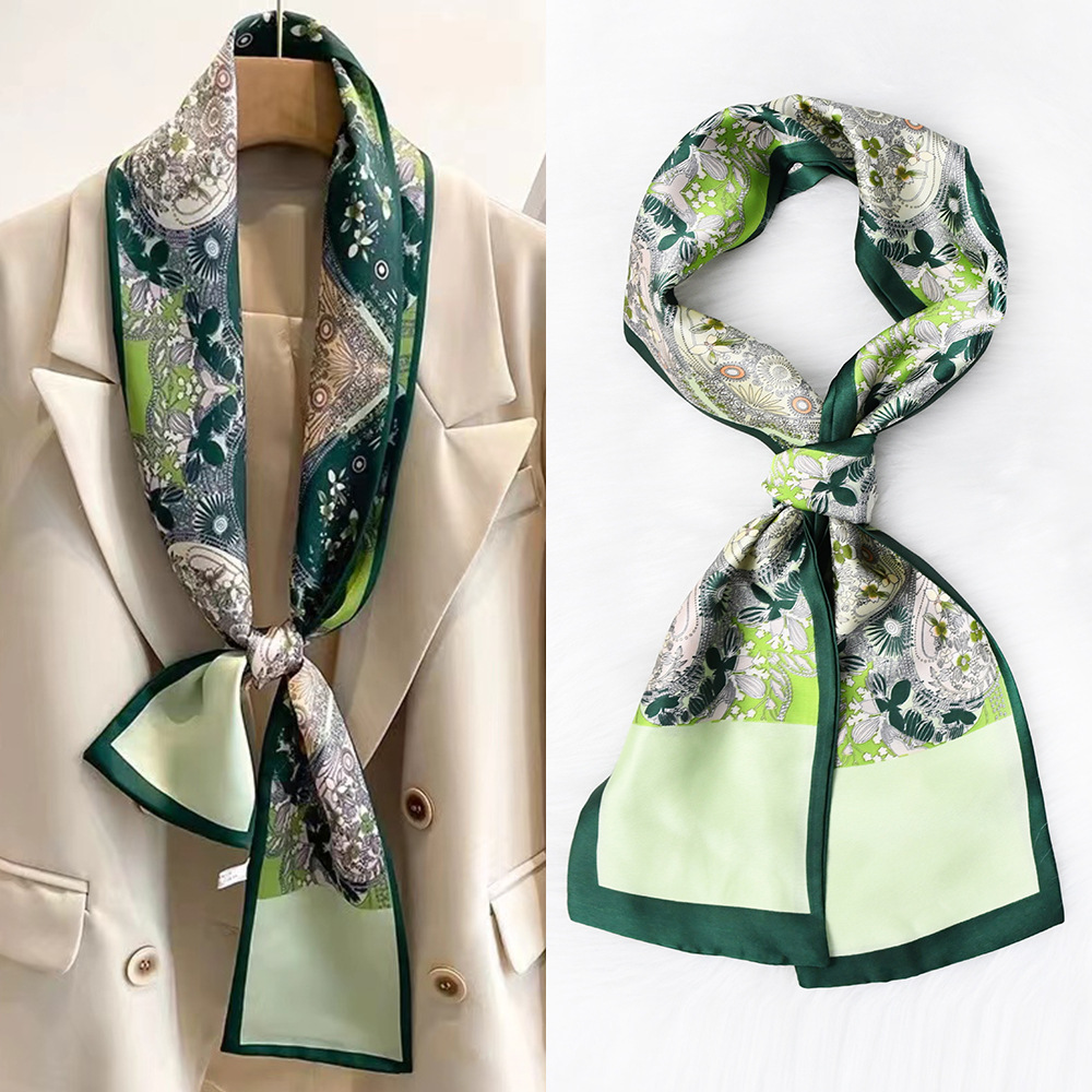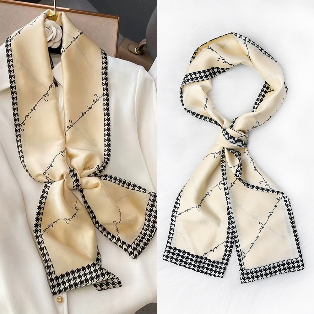 좁은 실크 스카프 긴 실크 스카프 하이 엔드 느낌을 가진 봄과 여름 올 매치 실크 더블 레이어 양면 전문 스카프 스타