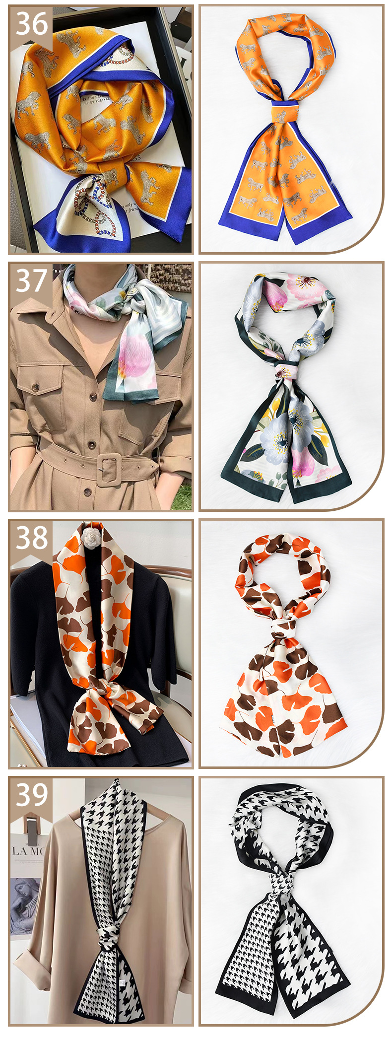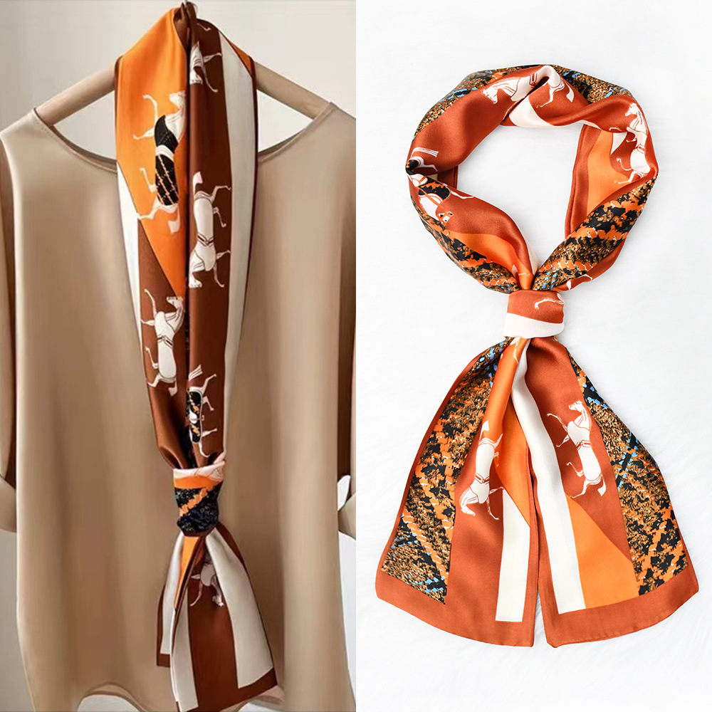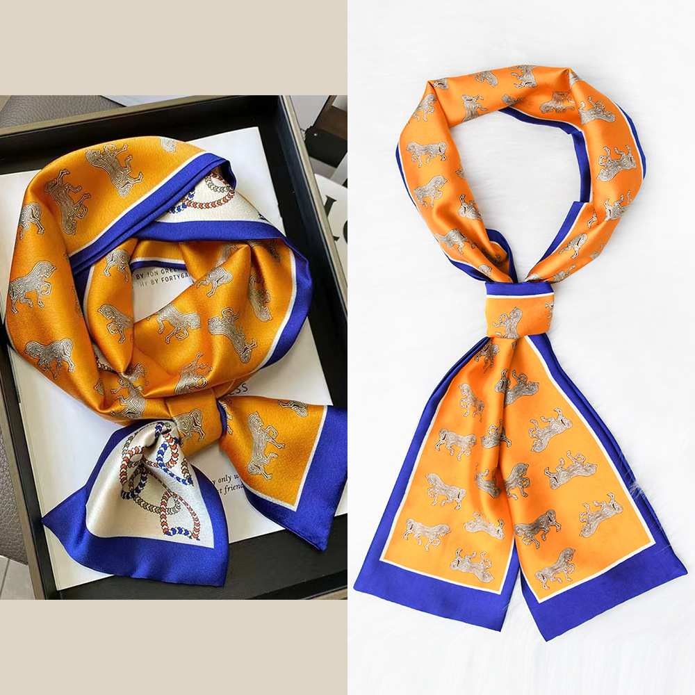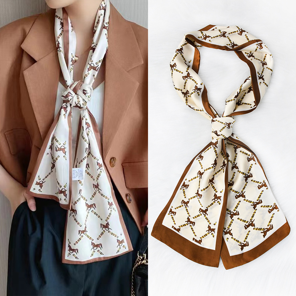 좁은 실크 스카프 긴 실크 스카프 하이 엔드 느낌을 가진 봄과 여름 올 매치 실크 더블 레이어 양면 전문 스카프 스타