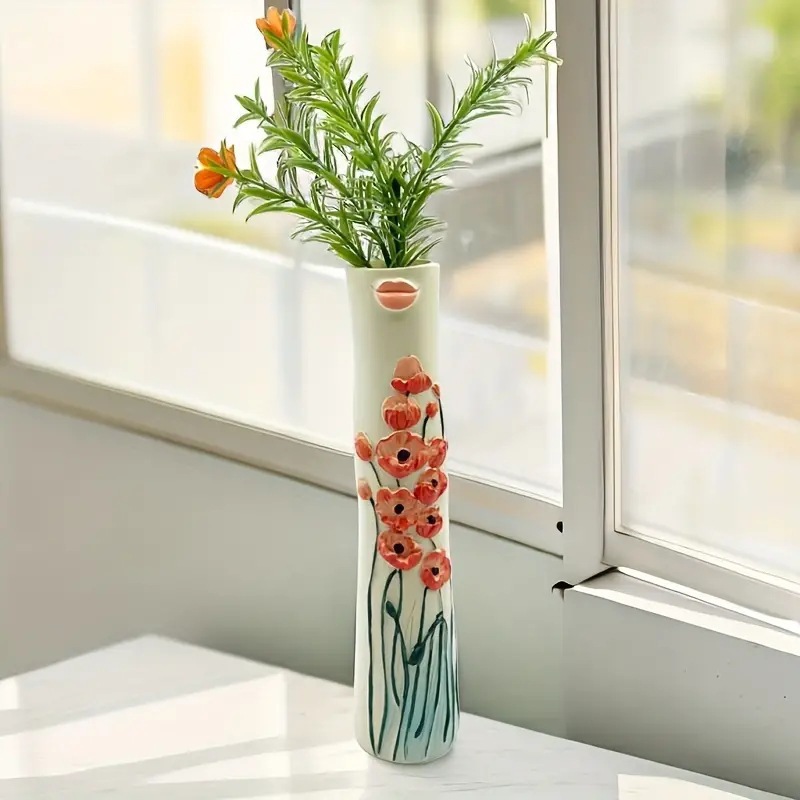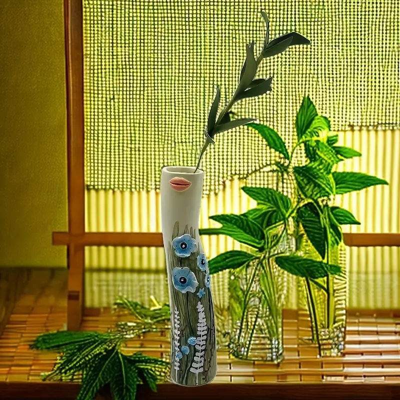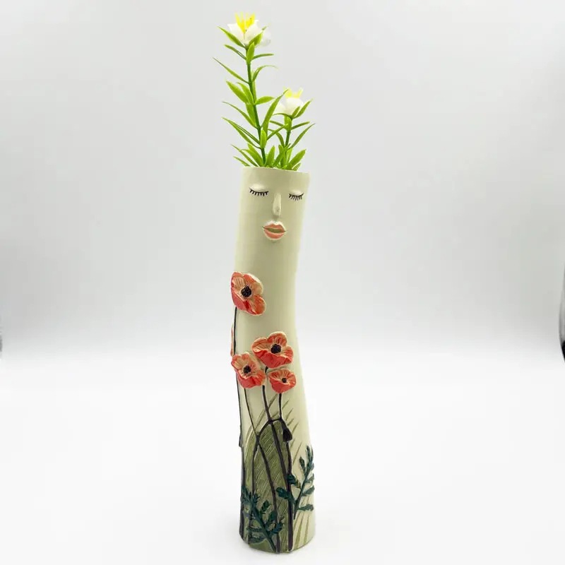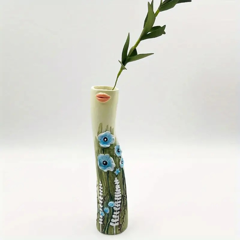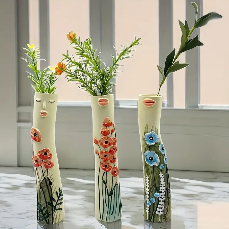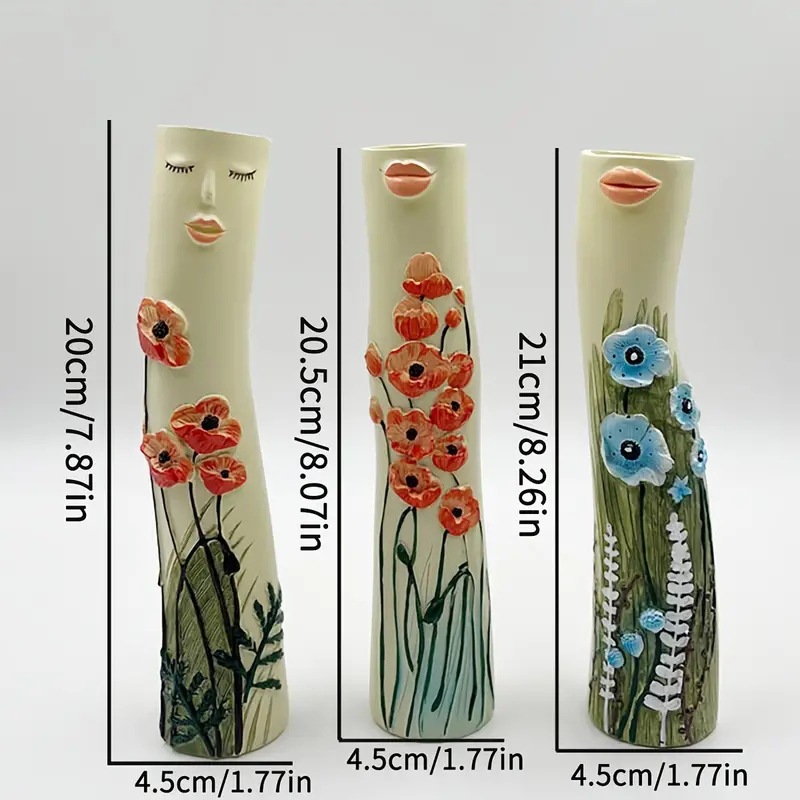 국경을 넘는 창의적인 인간의 얼굴 수지 꽃병 정원 야외 장식 조각품 손으로 그린 수지 꽃병 홈 장식품 선물