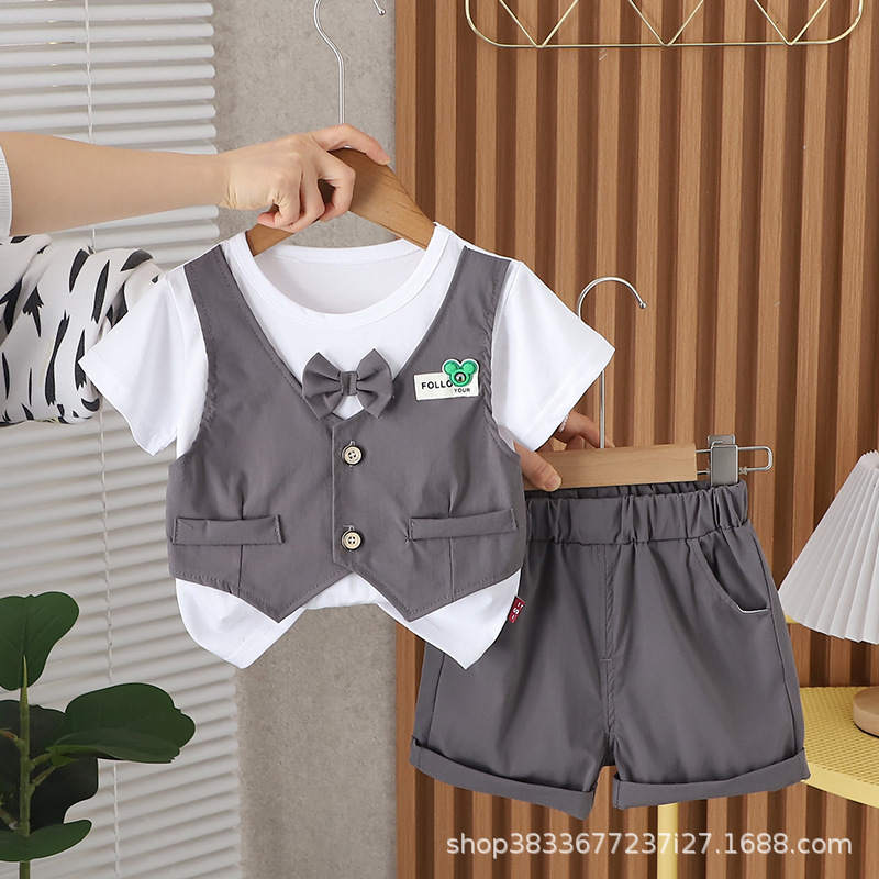 공장 아울렛 소년 여름 세트 조끼 세트 새로운 스타일 남자 아기 미키 짧은 소매 반바지 두 조각 세트스토어 가기