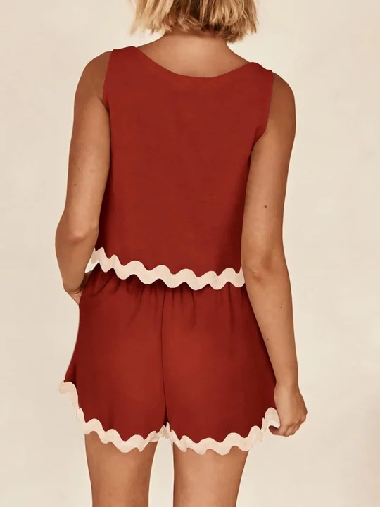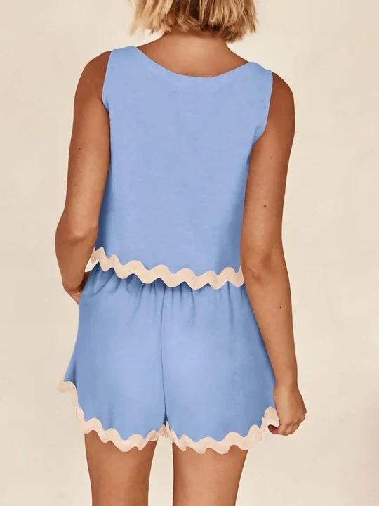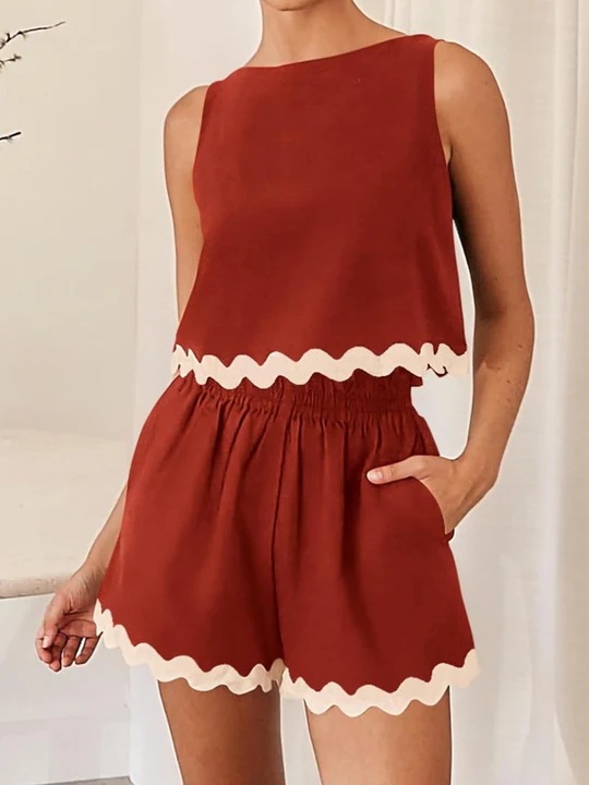 유럽과 미국의 국경 간 대외 무역 여성 2024 년 여름 투피스 레이스 라운드 넥 조끼 쇼트 탑 반바지