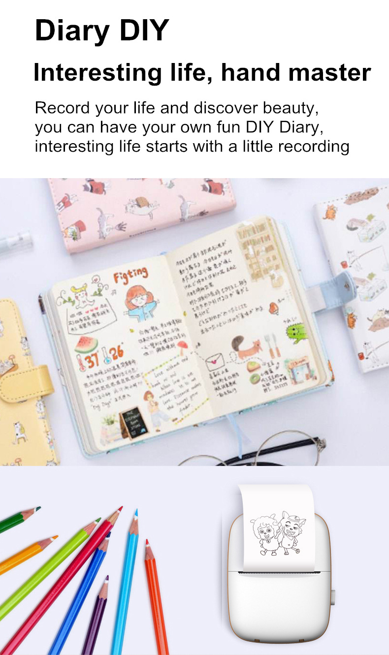 • A8 프린터 5 롤 인쇄 용지 5 롤 10 년 스티커 수채화 펜 무작위 스티커 3 롤 인쇄 용지 저장 가방