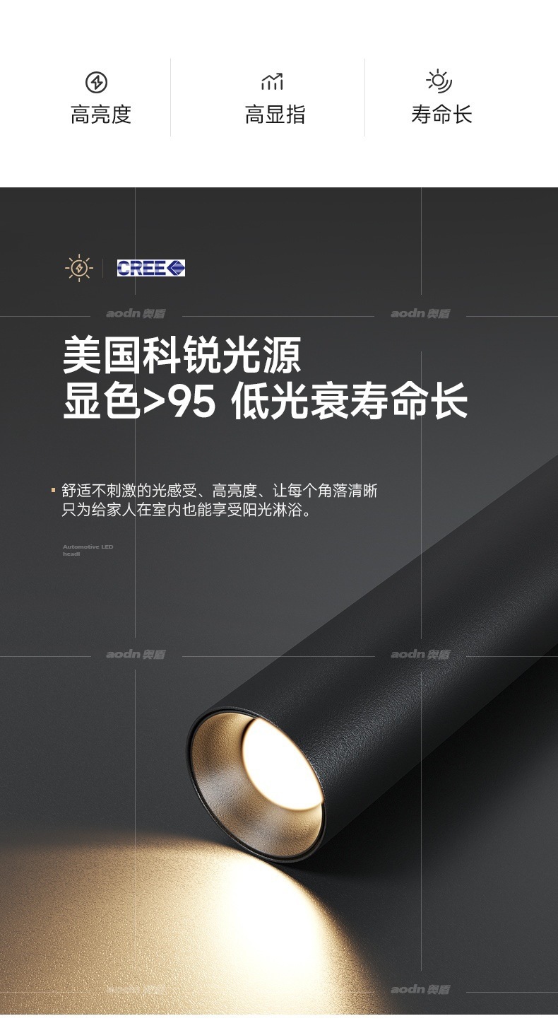 • 알루미늄/흑요석 블랙-왼쪽-6 와트-따뜻한 빛 (미국 크리 COB 광원)