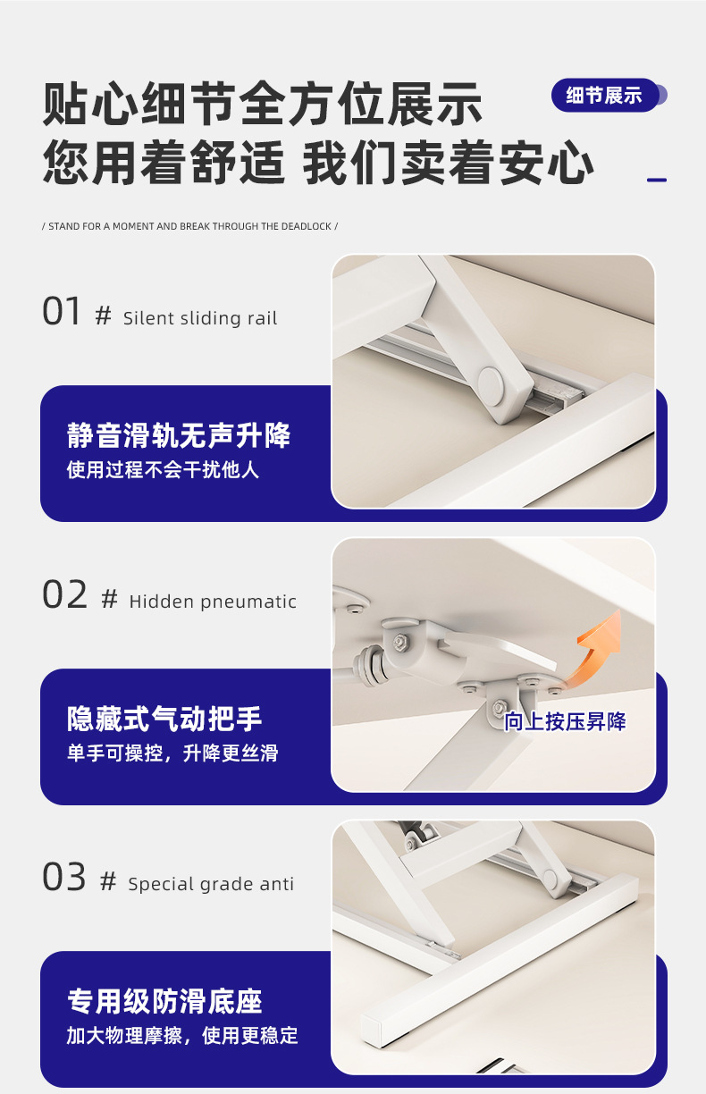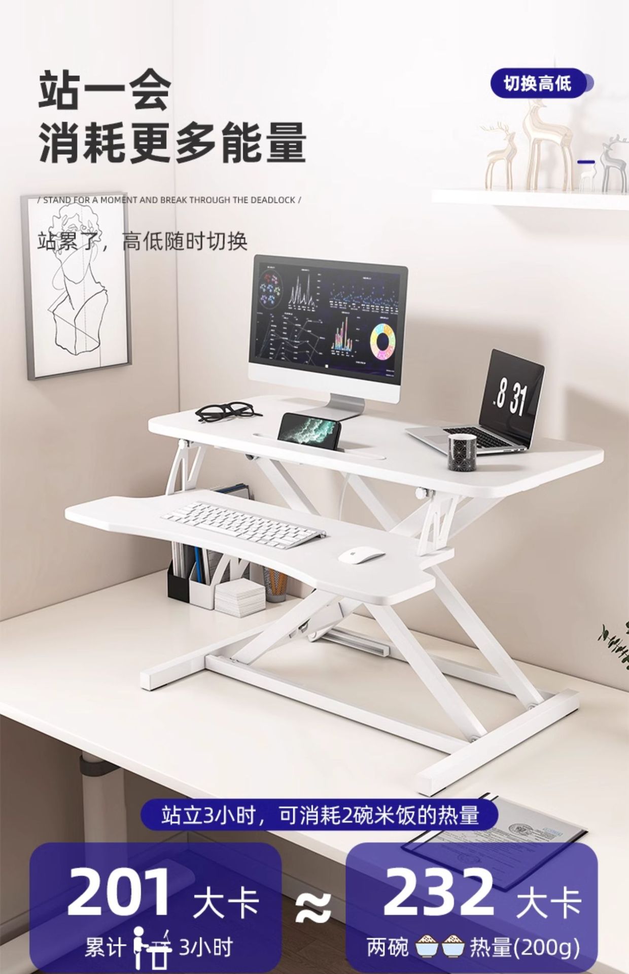 电脑桌站立式升降桌气动升降可调节增高架可折叠办公桌笔记本桌子