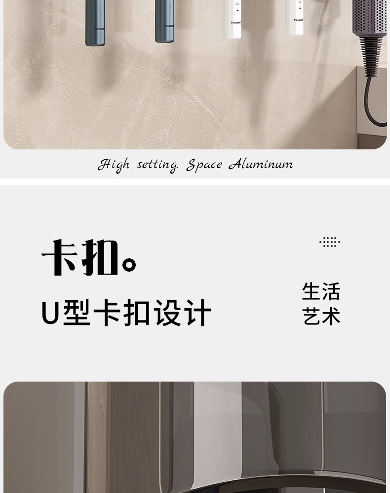 총 애쉬 칫솔 보관 랙 펀치없는 화장실 가글컵 보관 벽 장착 전기 칫솔 헤어 드라이어 랙
