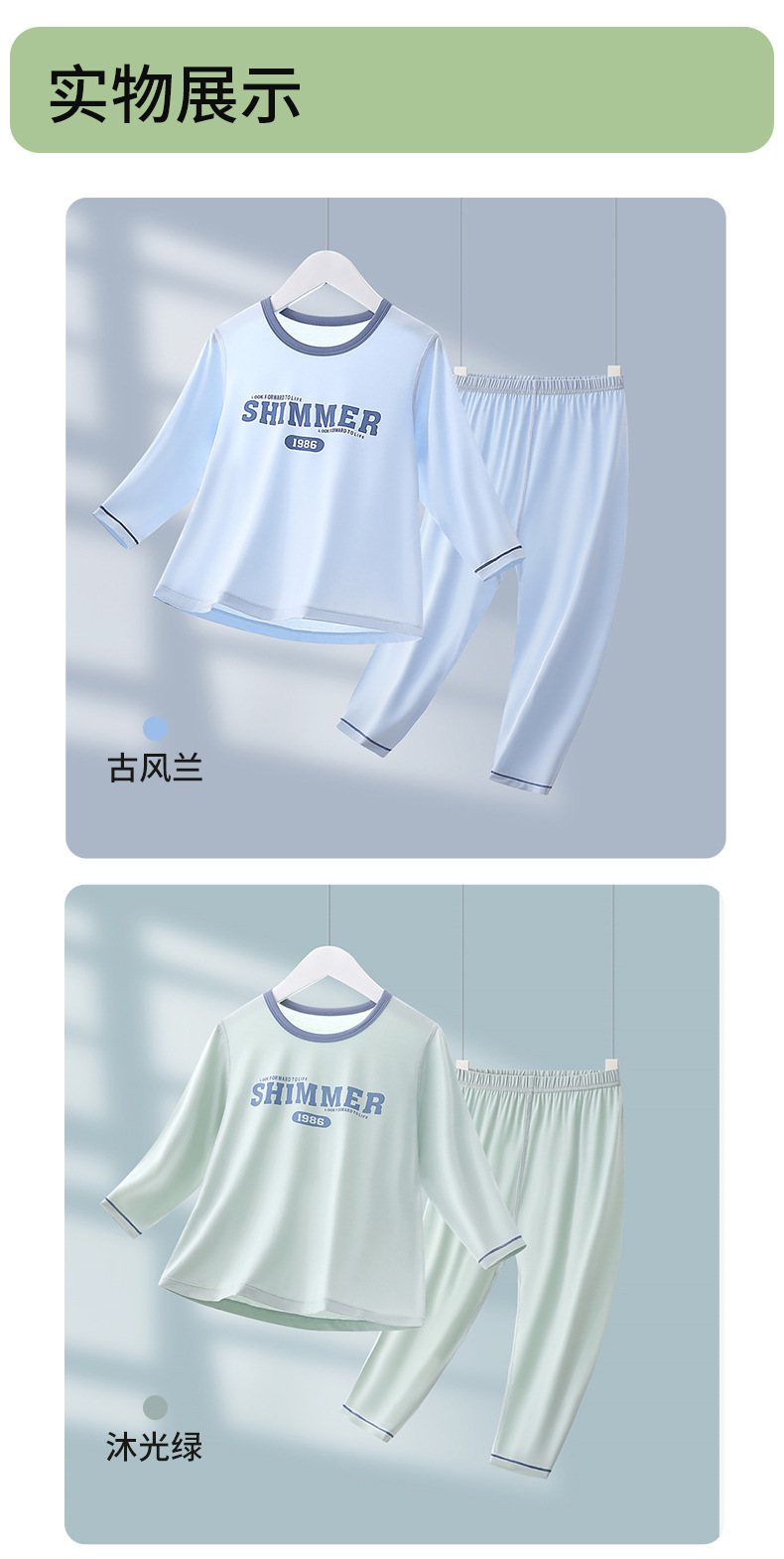 모달 어린이 잠옷 세트 사계절 얇은 긴팔 바지 봄, 가을 소년과 소녀 가을 옷과 가을 바지 정장 배치