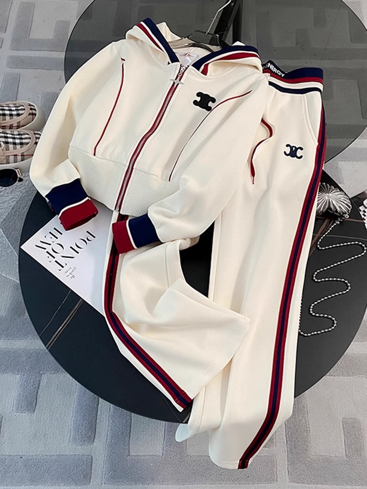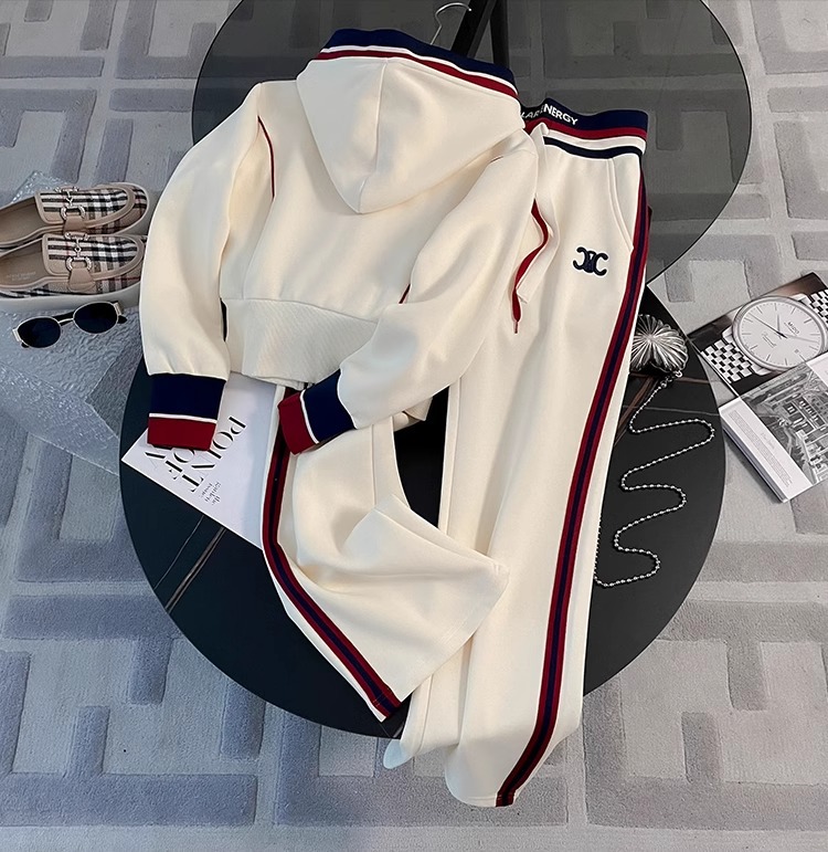 하이 엔드 브랜드 캐주얼 스포츠 세트 여성 봄 2024 새로운 패션 유럽 용품 후드 스웨터 스트레이트 팬츠 투피스 세트스토어 가기