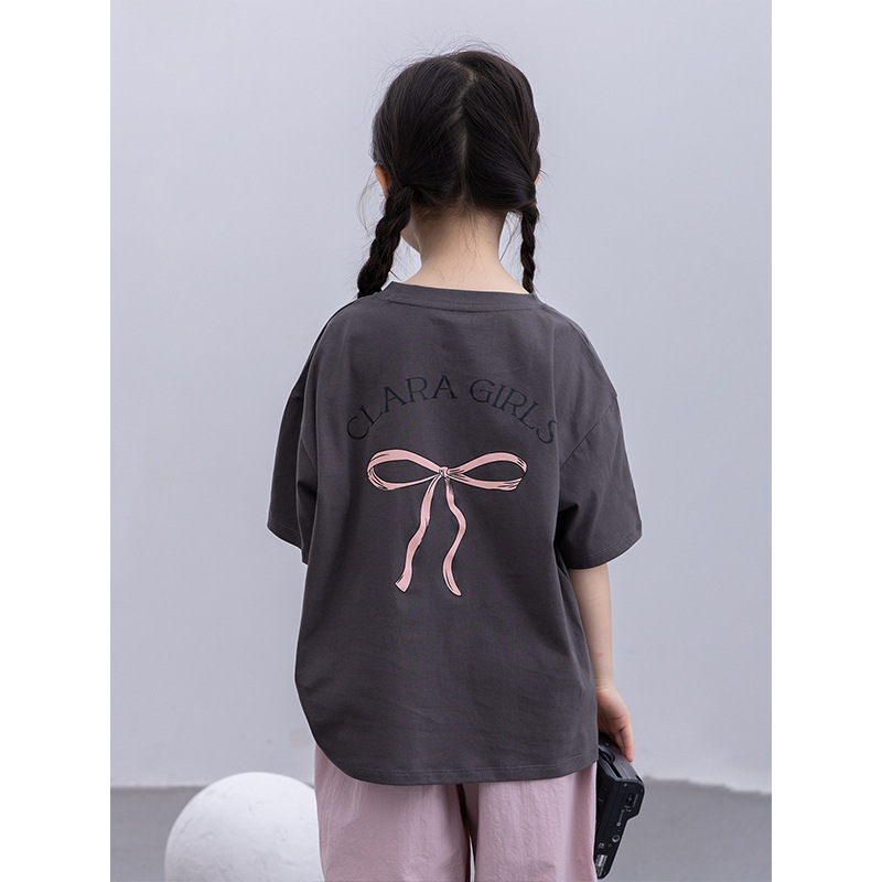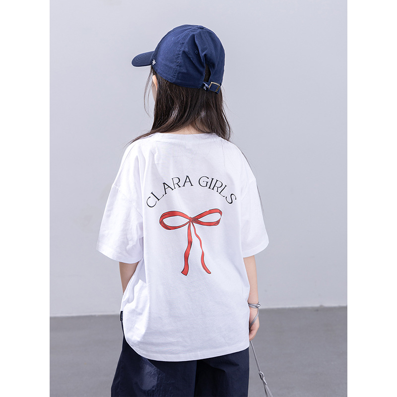 어린이 인쇄 반팔 2025 여름 새 여자 느슨한 패션 ins 편지 활 라운드 넥 티셔츠 탑스토어 가기