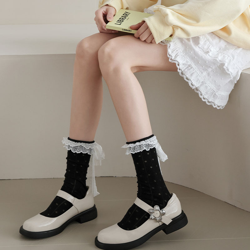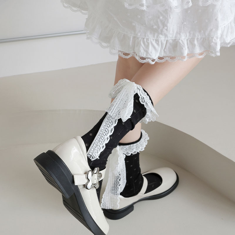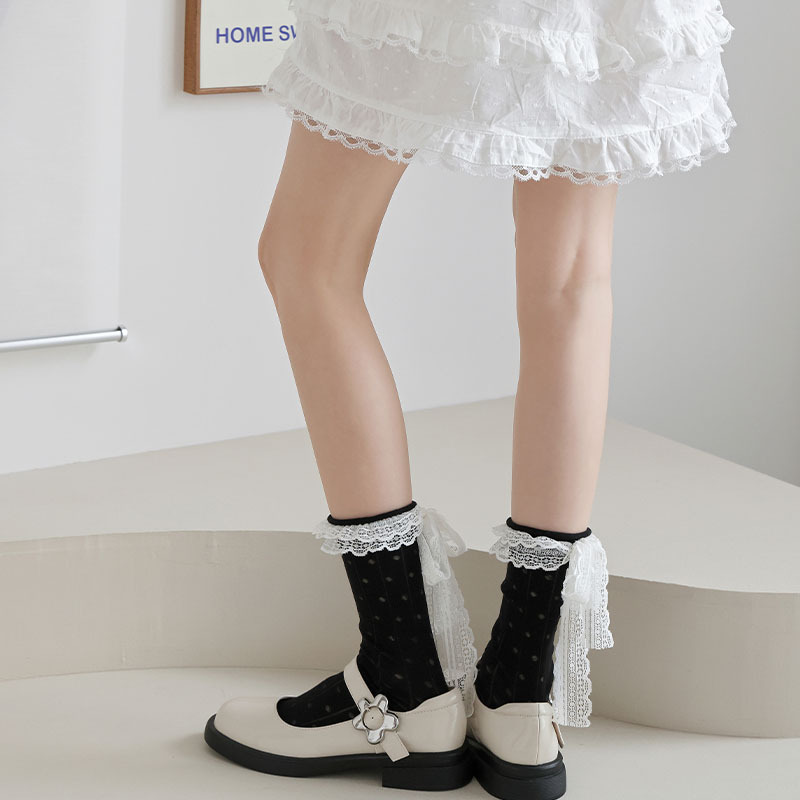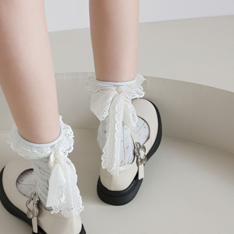 발레 스타일 일본 소녀의 달콤한 레이스 활 양말 여성의 여름 얇은 메쉬 통기성 귀여운 더미 양말