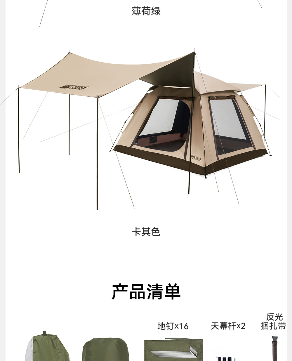 • 빠른 오픈 캐슬 티타늄 블랙 울트라 라이트 자동 텐트/카키