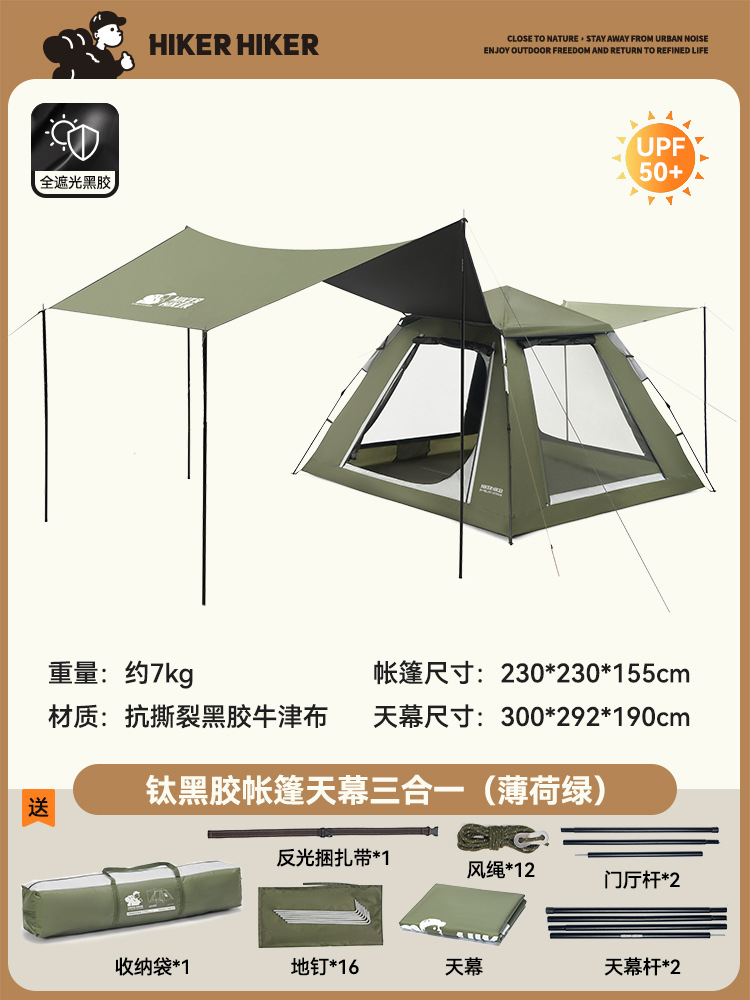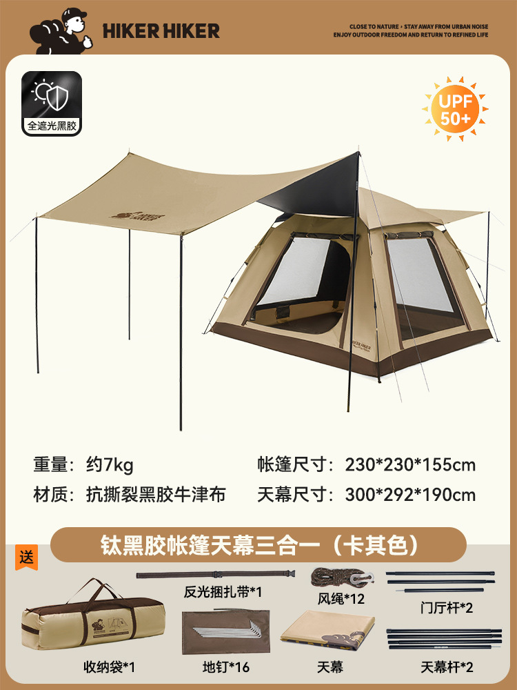 [빠른 개통 성] 베티와 야외 텐트 캐노피 투인원 캠핑 블랙 고무 접이식 휴대용 차양스토어 가기