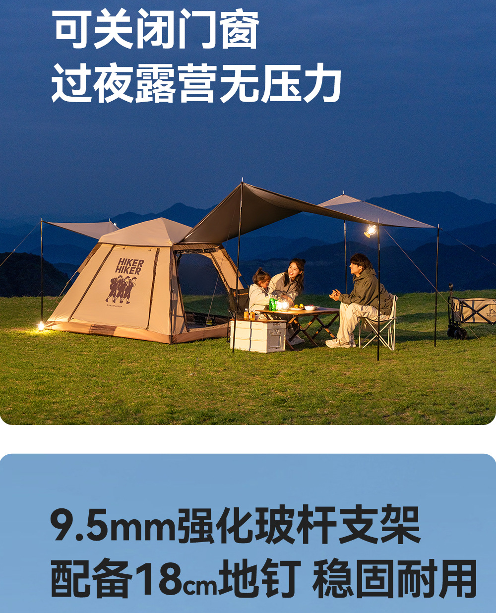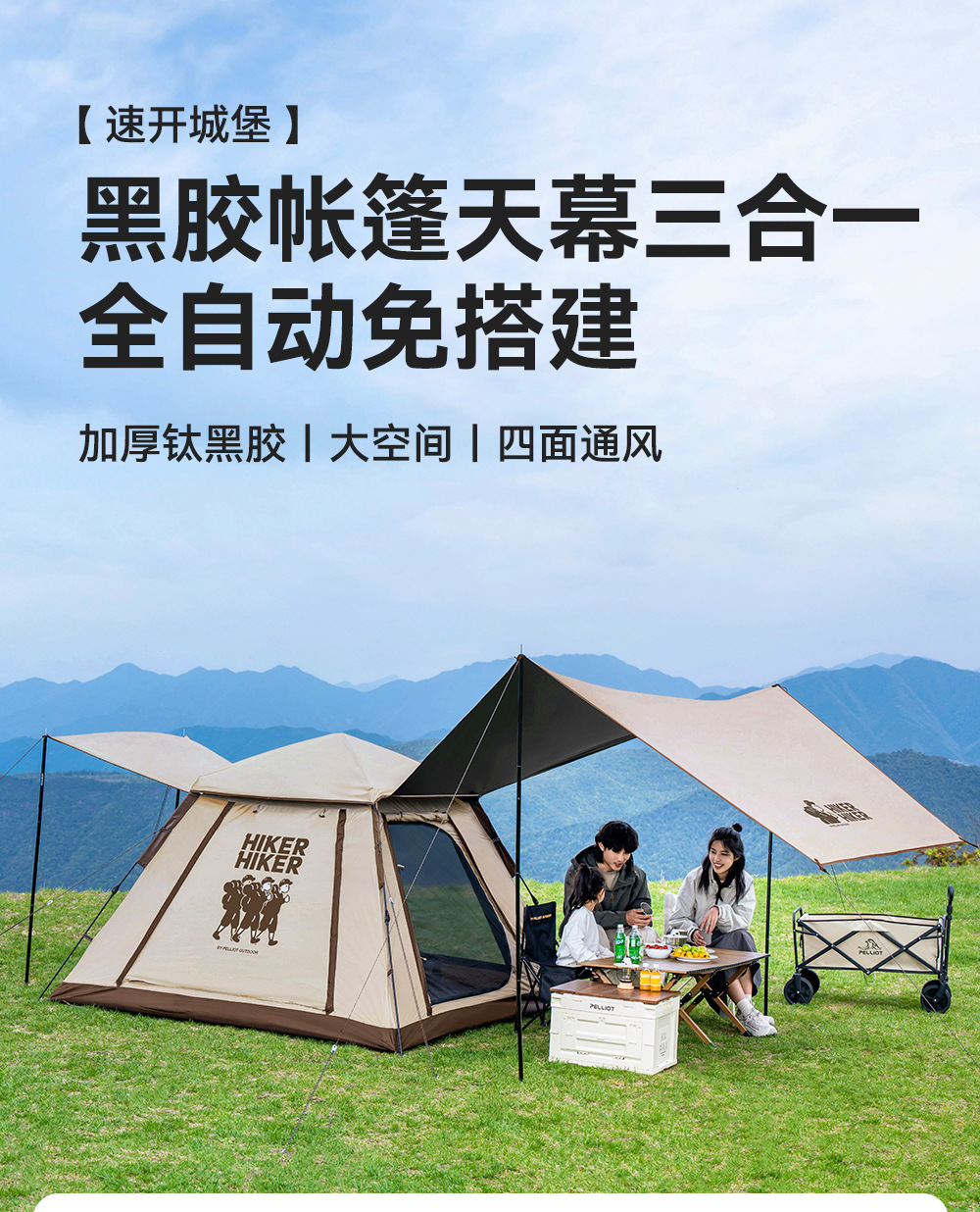 [빠른 개통 성] 베티와 야외 텐트 캐노피 투인원 캠핑 블랙 고무 접이식 휴대용 차양