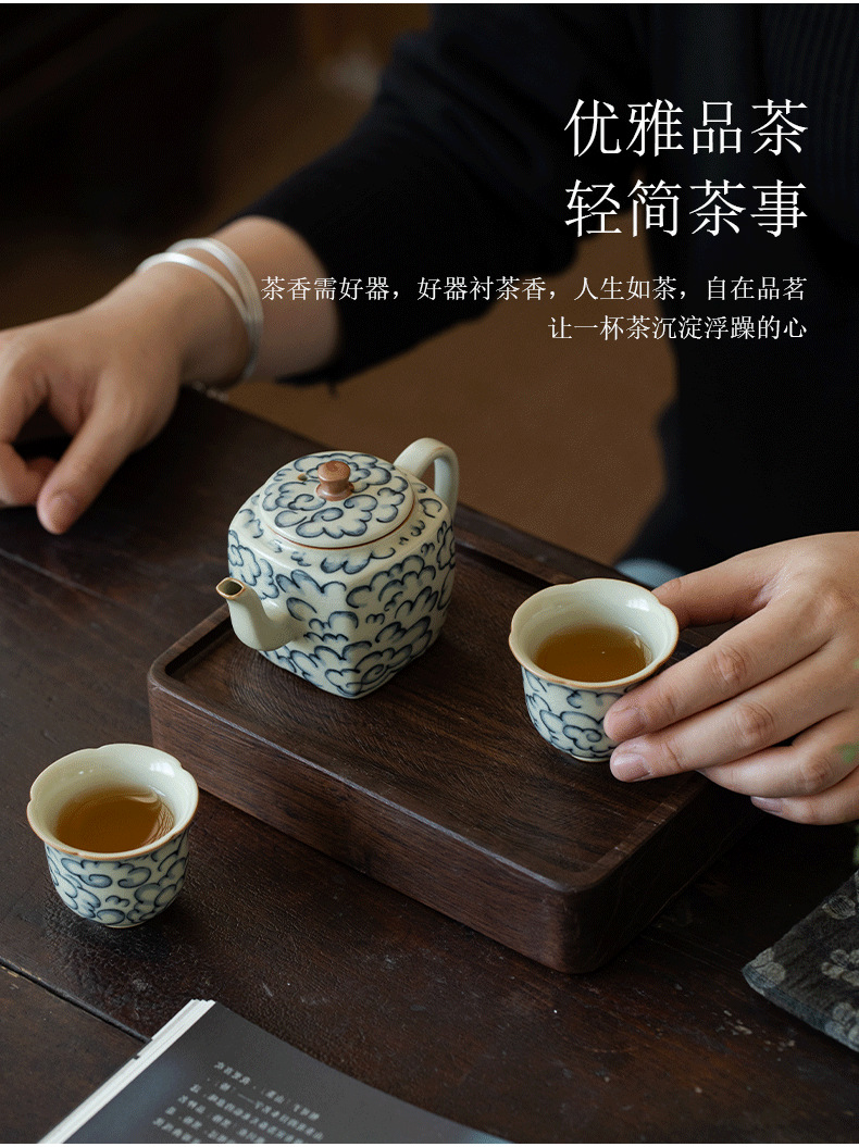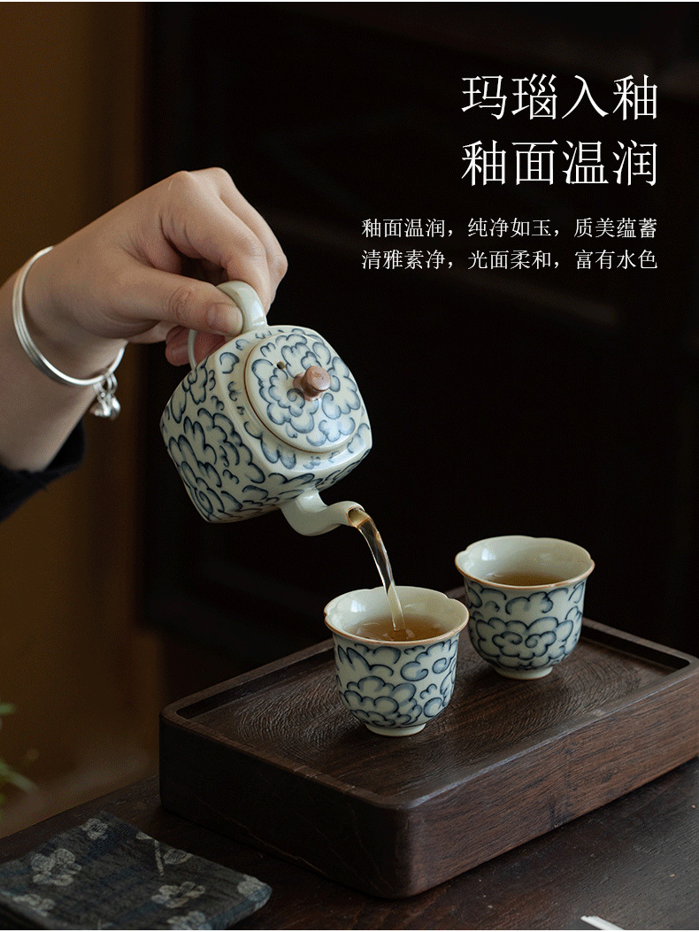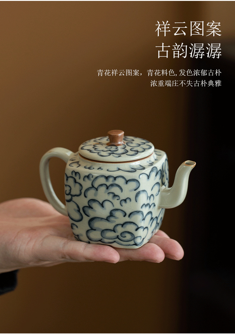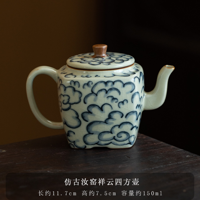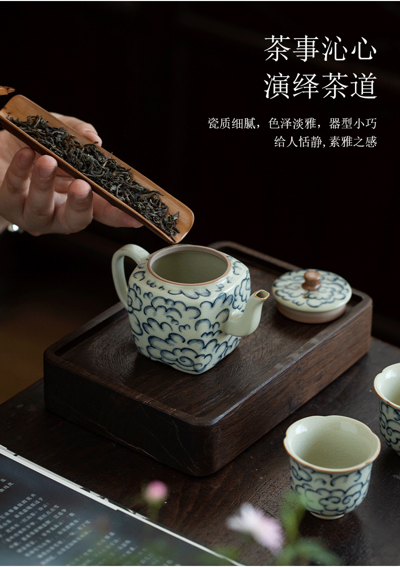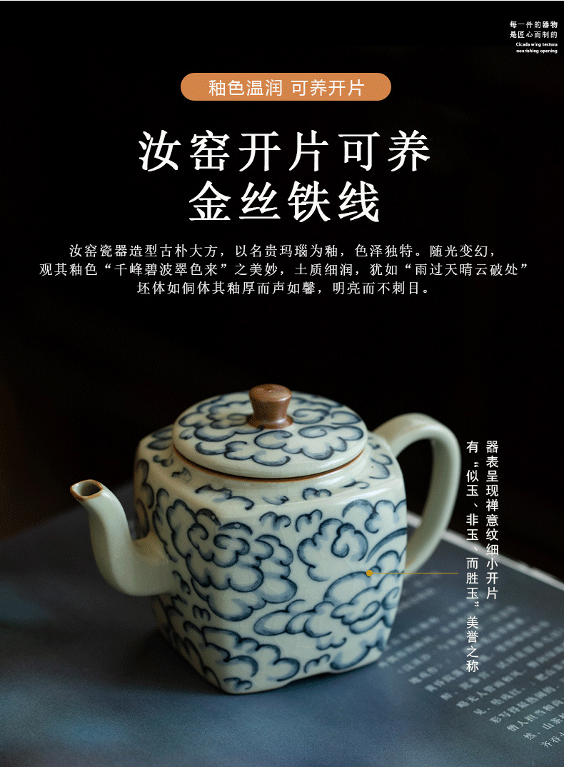 Ru Kiln 주전자 단일 작은 세라믹 쿵푸 차 세트 파란색과 흰색 도자기 오픈 조각은 Sifang 냄비 가정용 작은 차 메이커를 올릴 수 있습니다스토어 가기