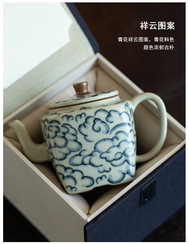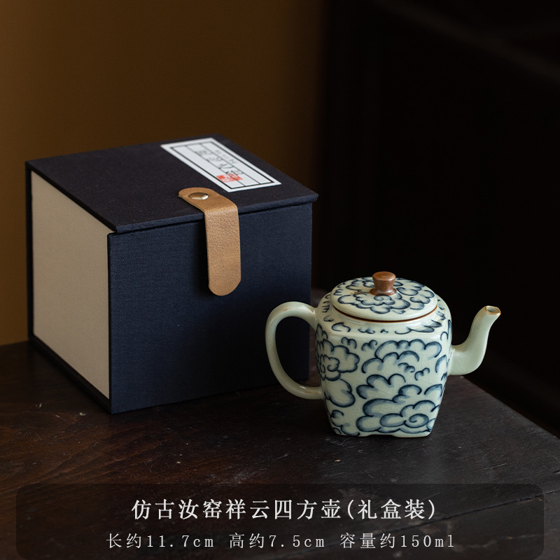 • Ru Kiln-Sifang 냄비 선물 상자의 유약에 행운의 구름
