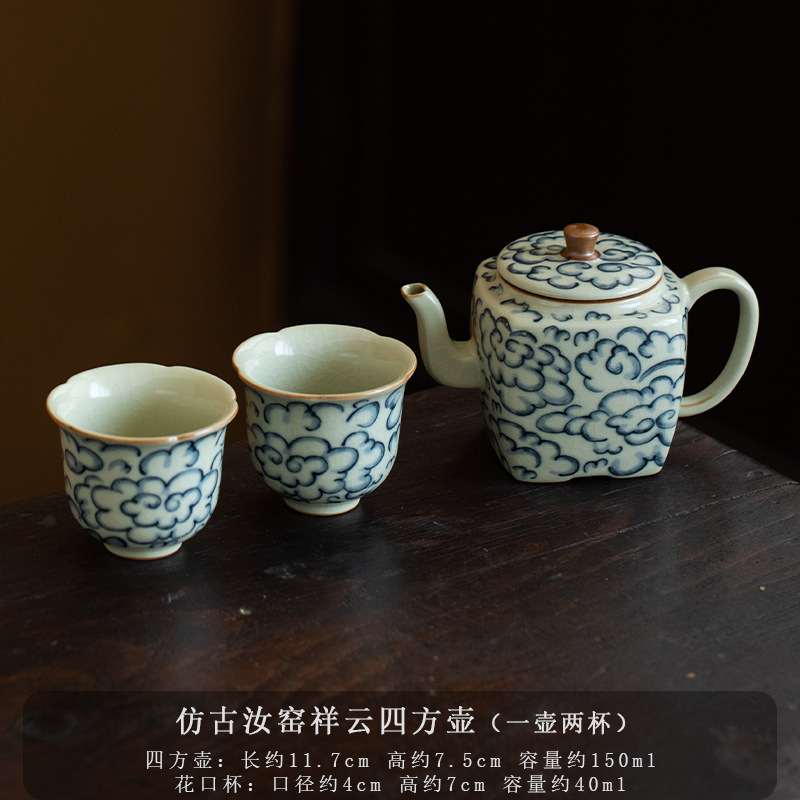• Ru Kiln의 유약의 길조 구름-Sifang Pot의 두 컵