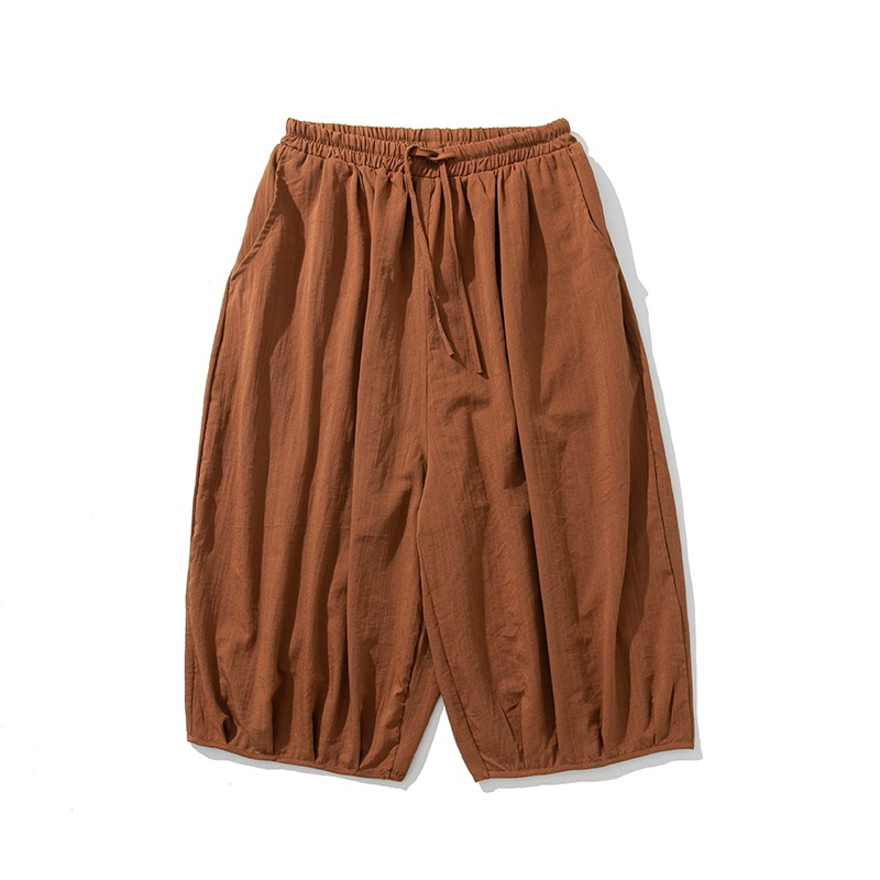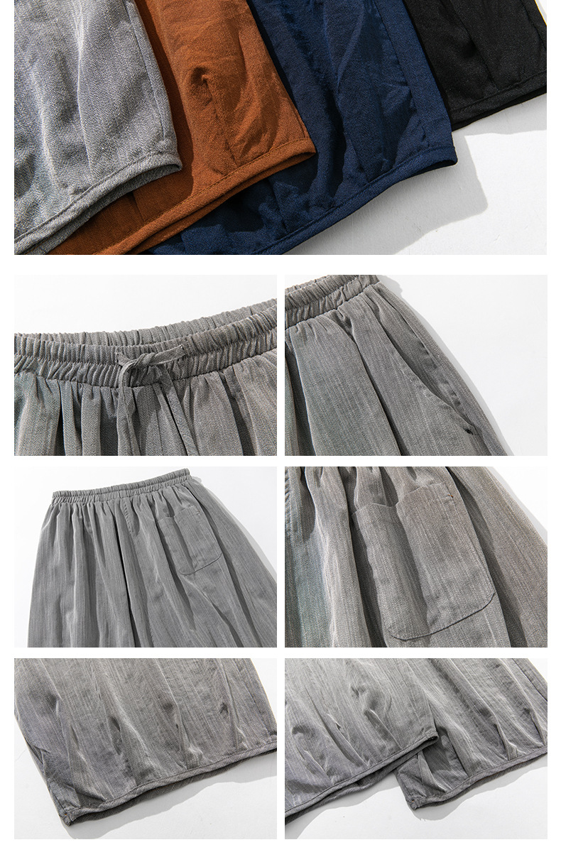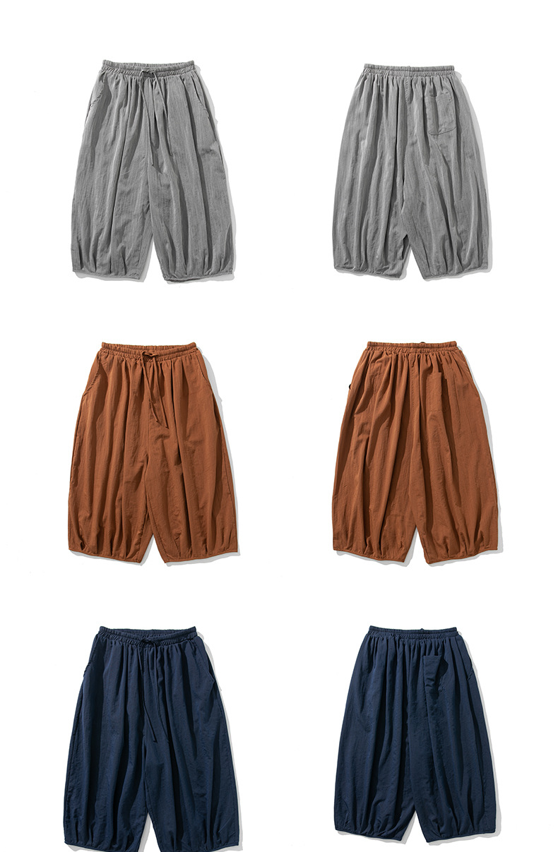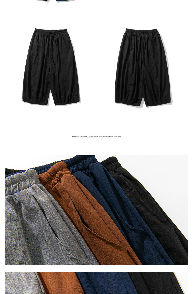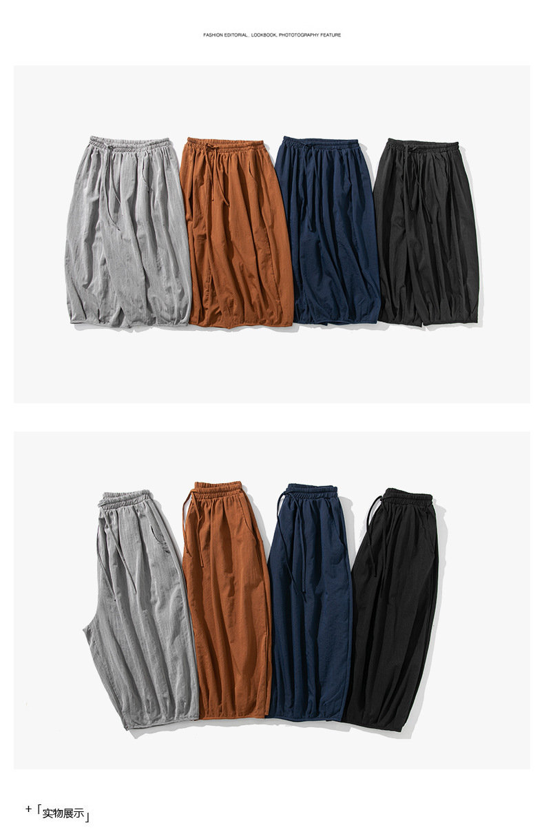 남성용 캐주얼 바지 여름 새로운 일본 스타일 7 점 바지 느슨한 대형 중국 스타일 아이스 실크 블루머스 스트레이트 다리 넓은 다리 바지스토어 가기