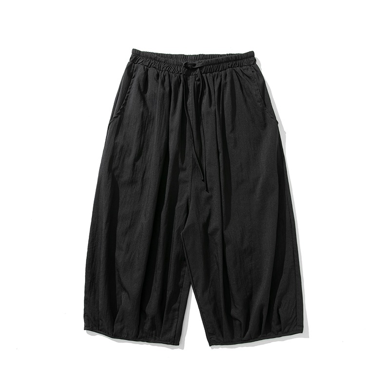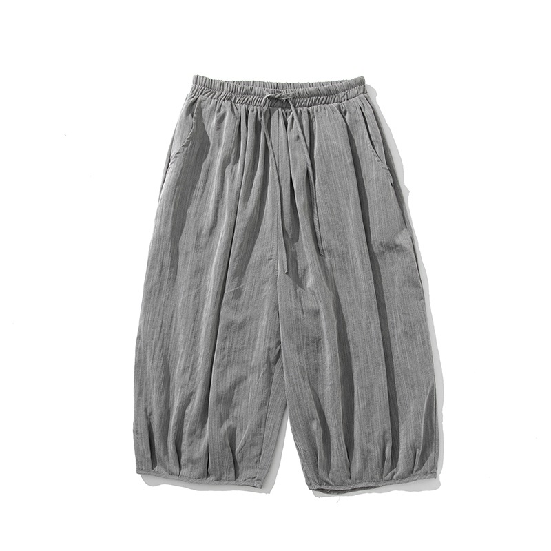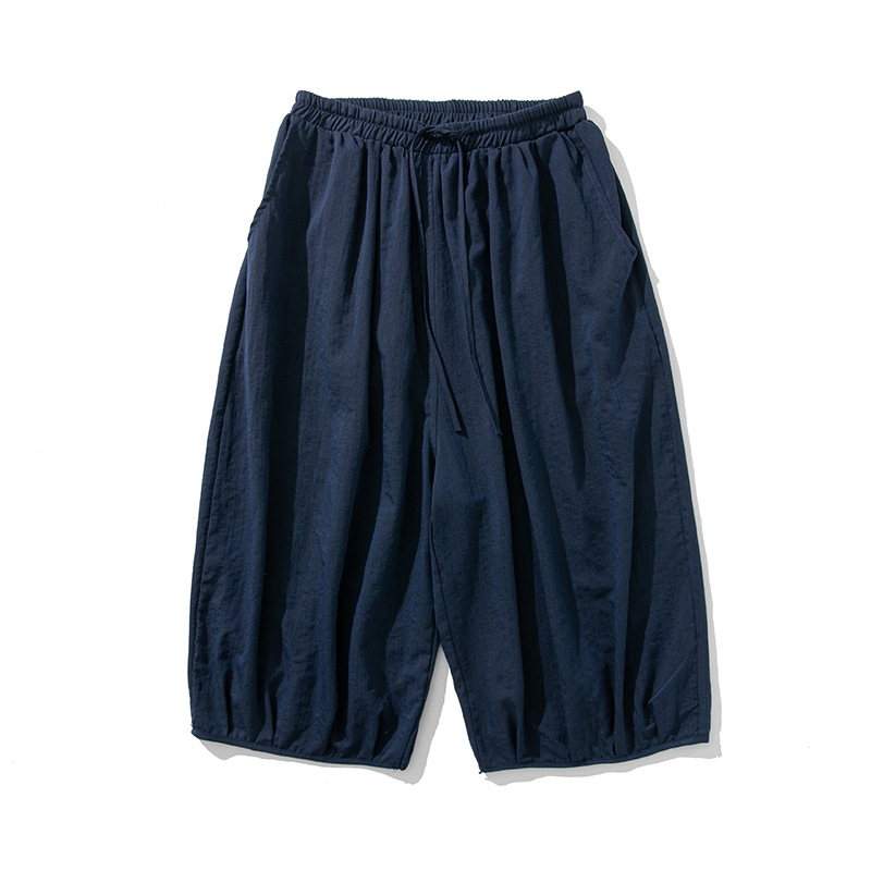 남성용 캐주얼 바지 여름 새로운 일본 스타일 7 점 바지 느슨한 대형 중국 스타일 아이스 실크 블루머스 스트레이트 다리 넓은 다리 바지