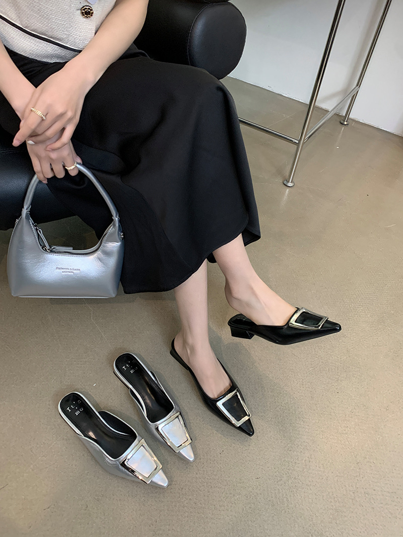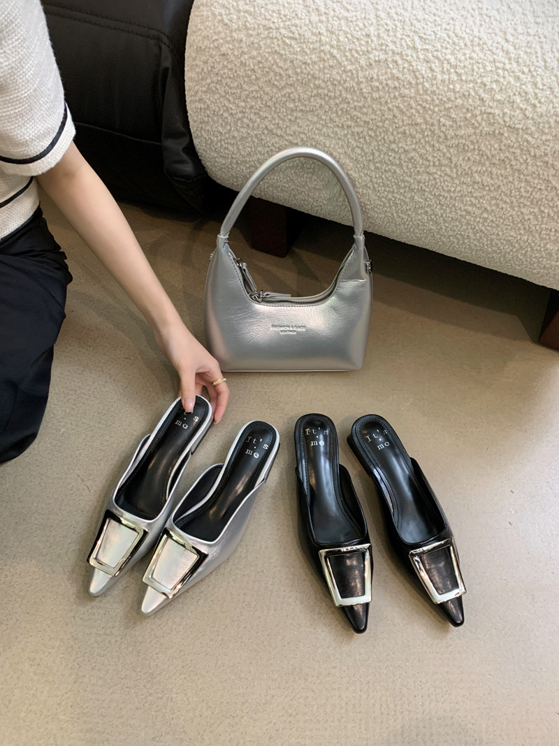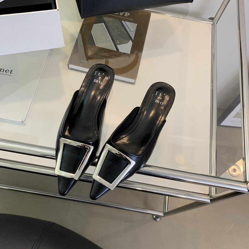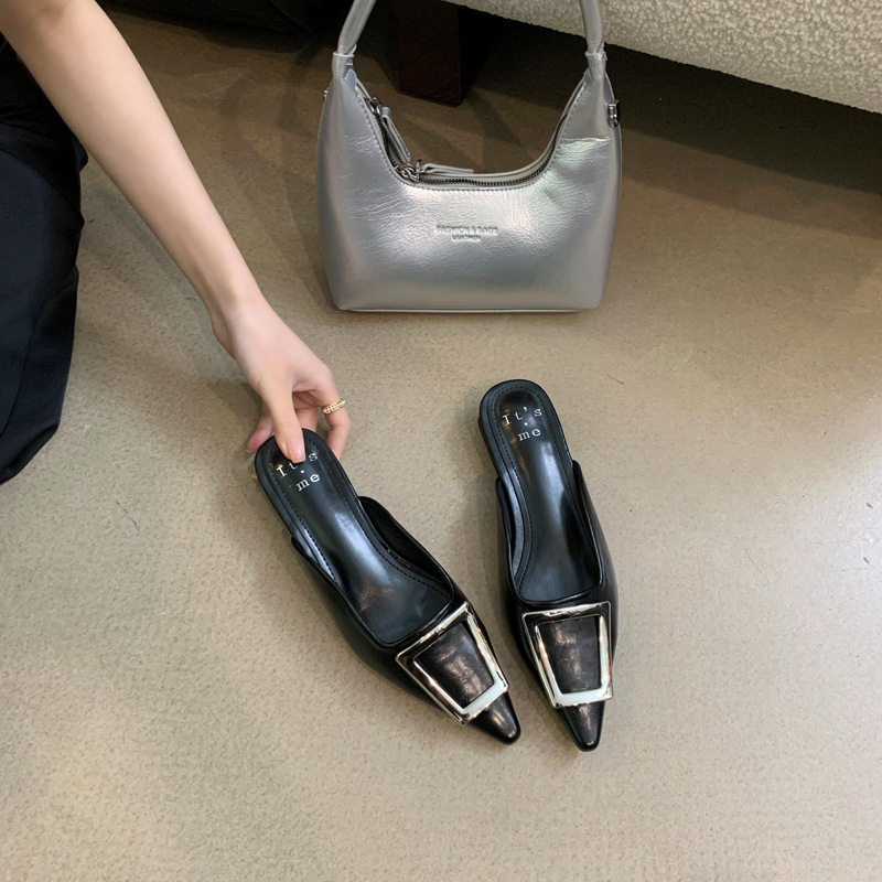 2024 새로운 여성용 슬리퍼 캐주얼 로우 힐 프랑스 기질 Baotou 슬리퍼 소프트 솔 샌들 및 슬리퍼 여성용 여름 아우터웨어