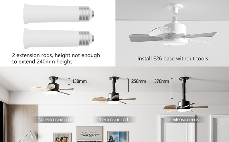 공장 직접 새로운 팬 램프 원격 제어 E27 스크류 천장 팬 램프 6 속도 풍속 조정 통합