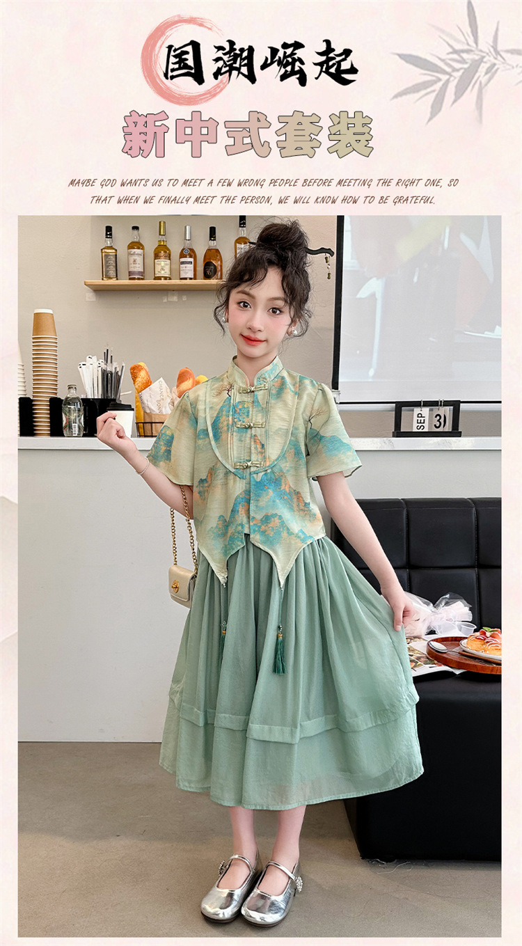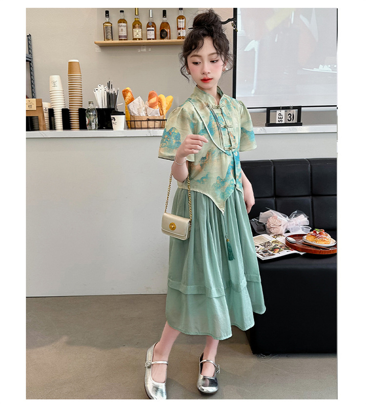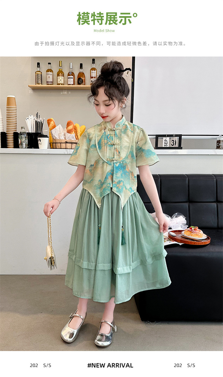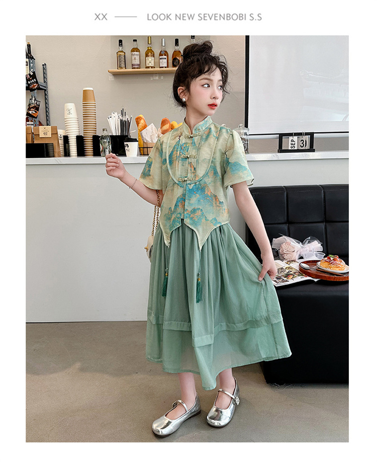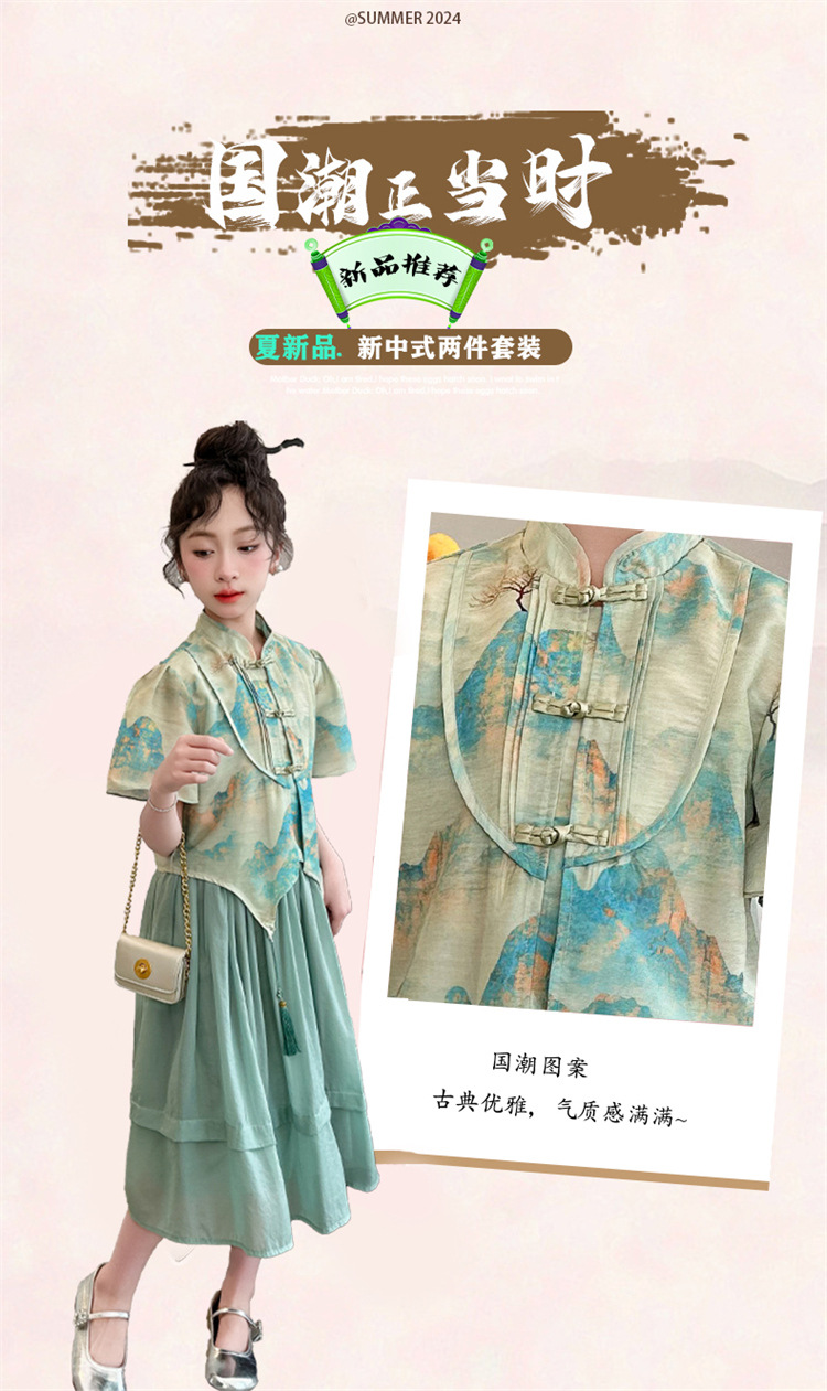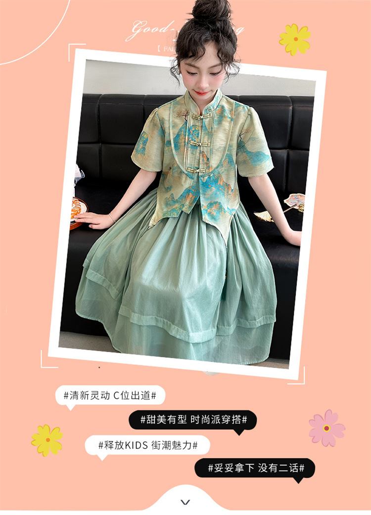 소녀의 큰 소년 한푸 세트 여름 2024 새로운 중국 스타일 개선 된 소녀의 레트로 탕 세트 새로운 중국 2 피스 세트스토어 가기