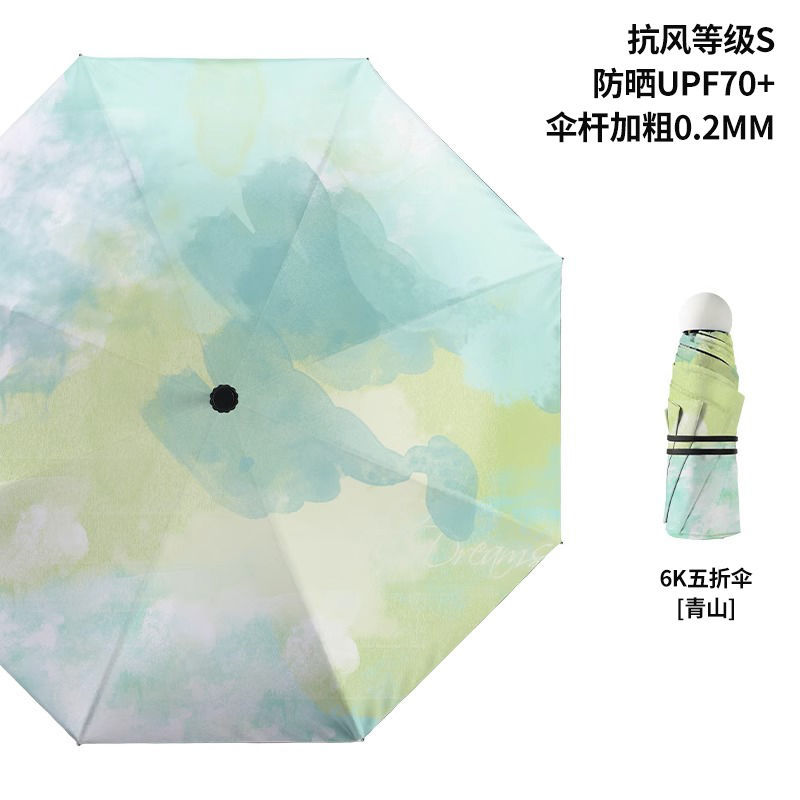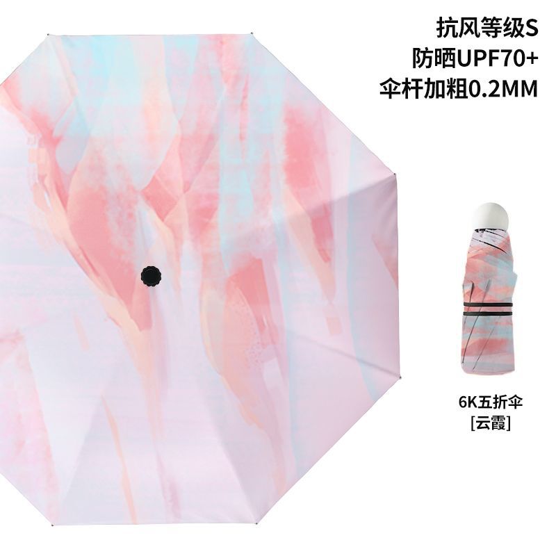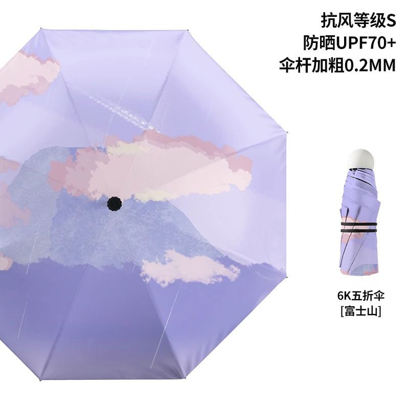 양산 우산 맑고 비 이중 사용 태양 우산 여성용 미니 우산 50% 접힌 자동 검은 접착제 안티 UV 우산 도매