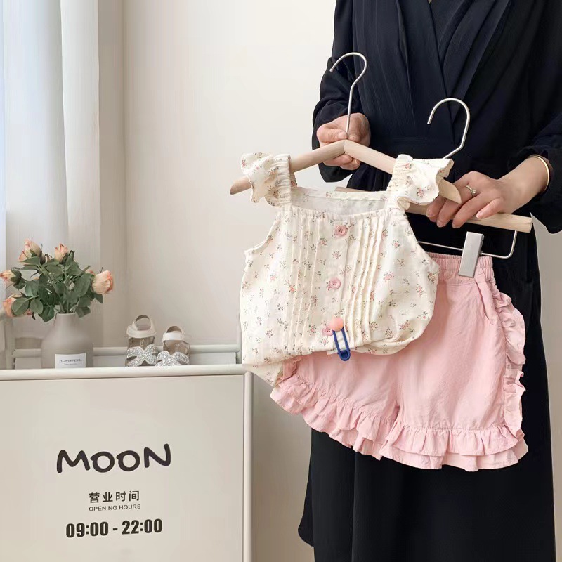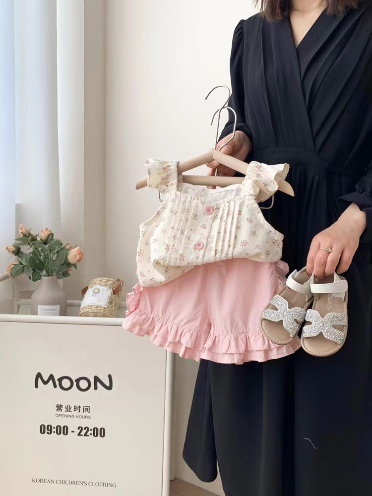 여아 여름복 2025 신상 아동 패션 한국 스타일 멜빵 여아 여름 반바지 투피스 세트스토어 가기