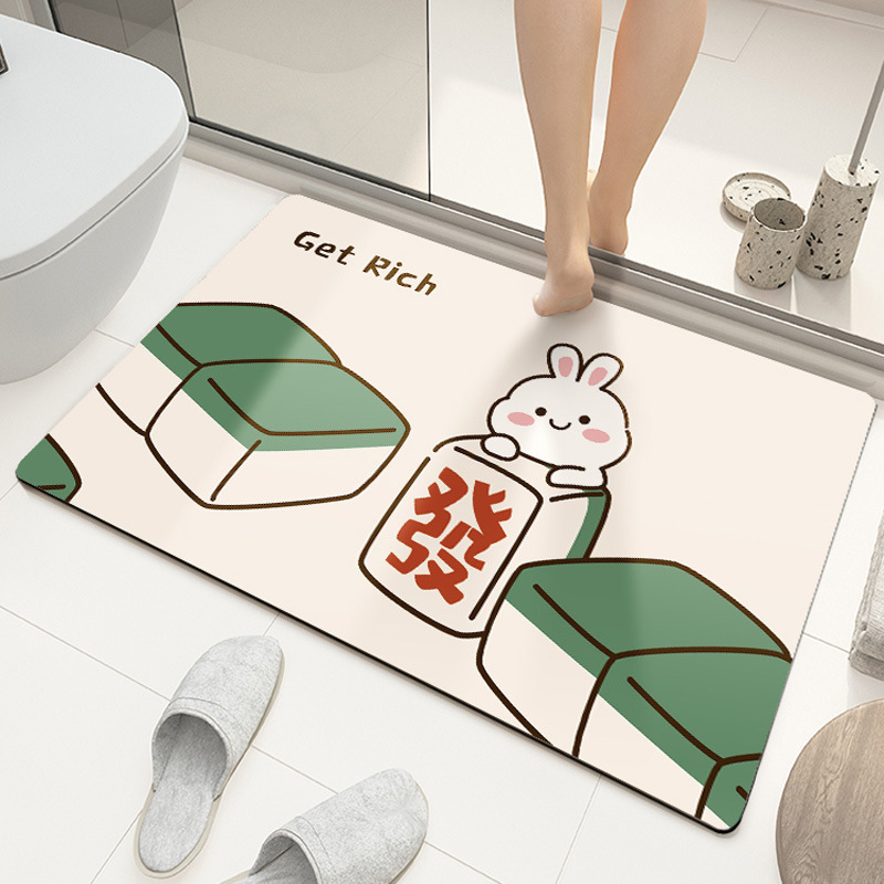 만화 풍부한 토끼 규조 진흙 흡수성 미끄럼 방지 매트 욕실 빠른 건조 발 매트 홈 먼지 방지 도어 매트 관리