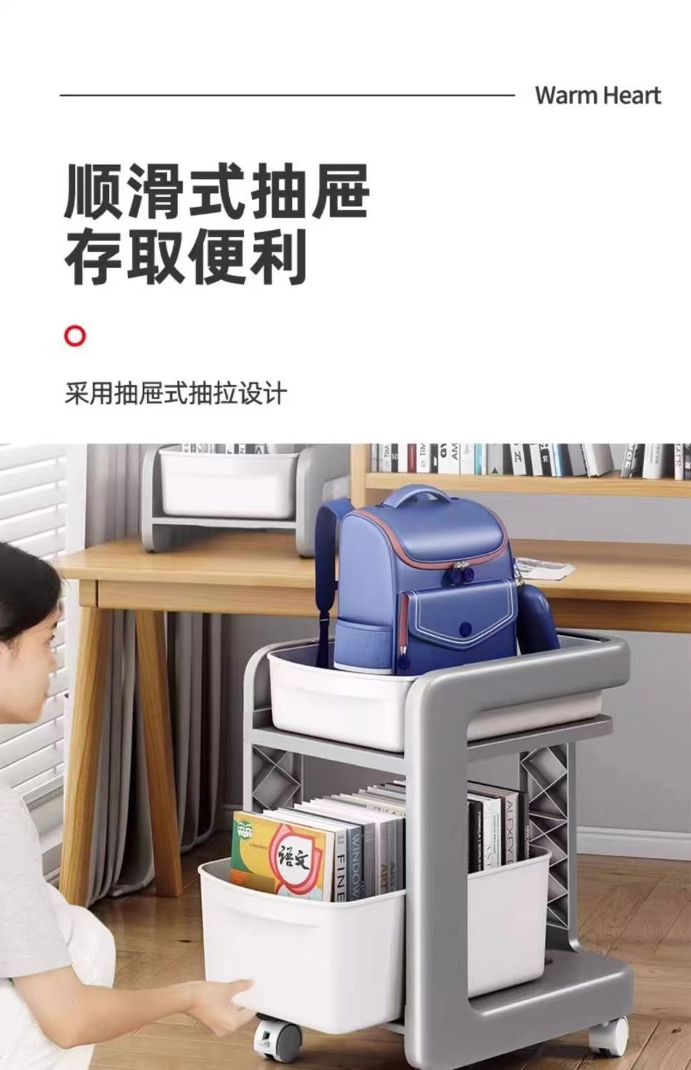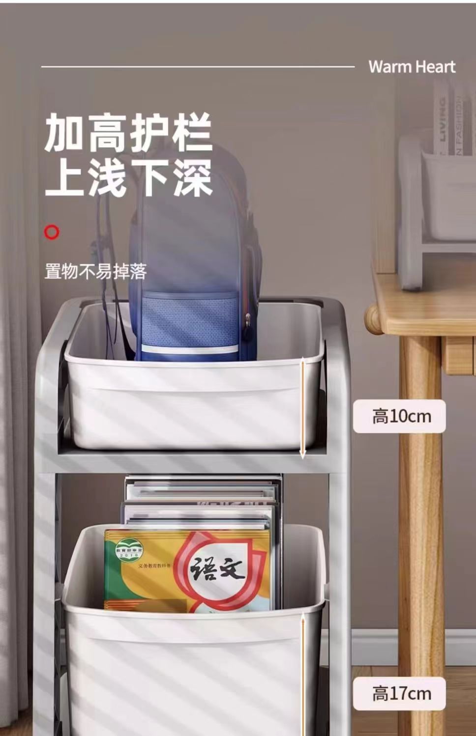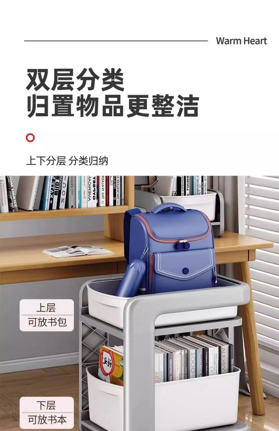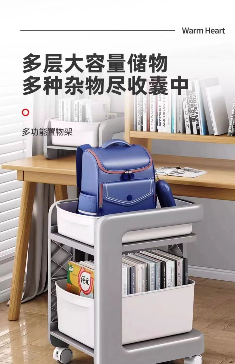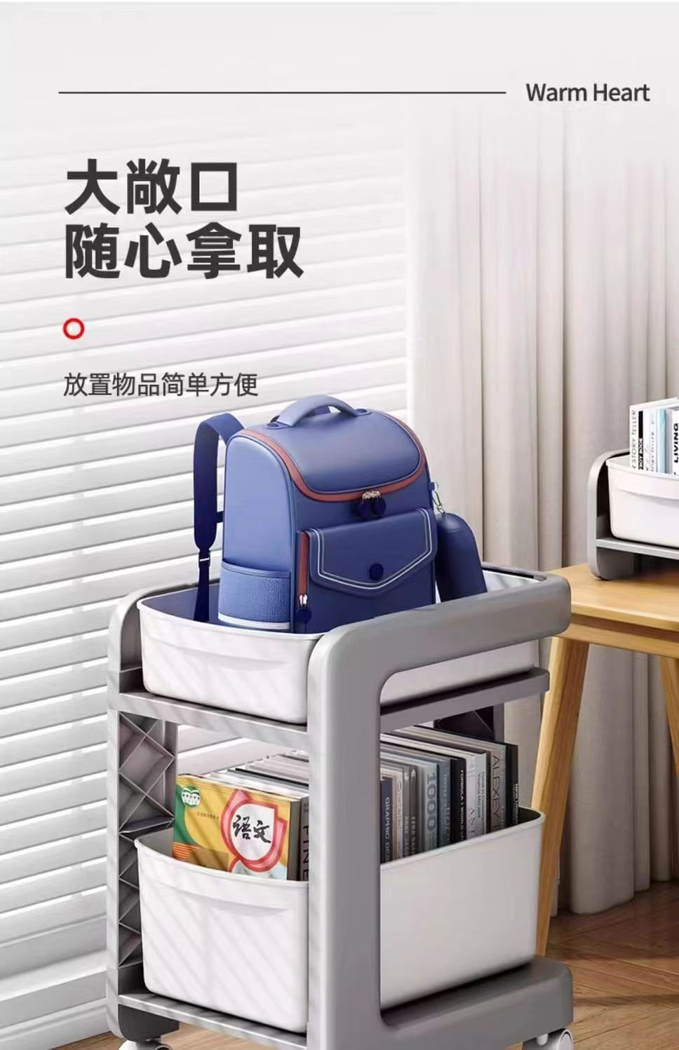 학교 가방 스토리지 랙 초등학생을위한 바퀴가 달린 모바일 트롤리 테이블 스토리지 랙 풋 랙 아래 책장 스터디 스토리지 랙스토어 가기
