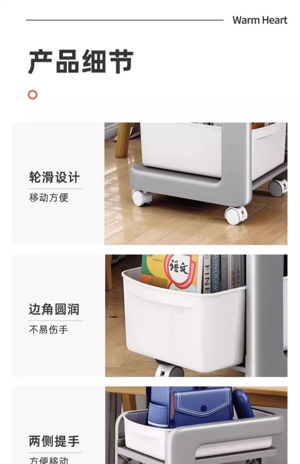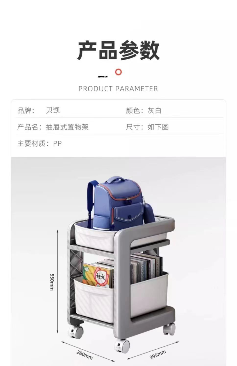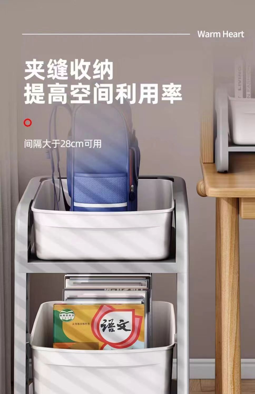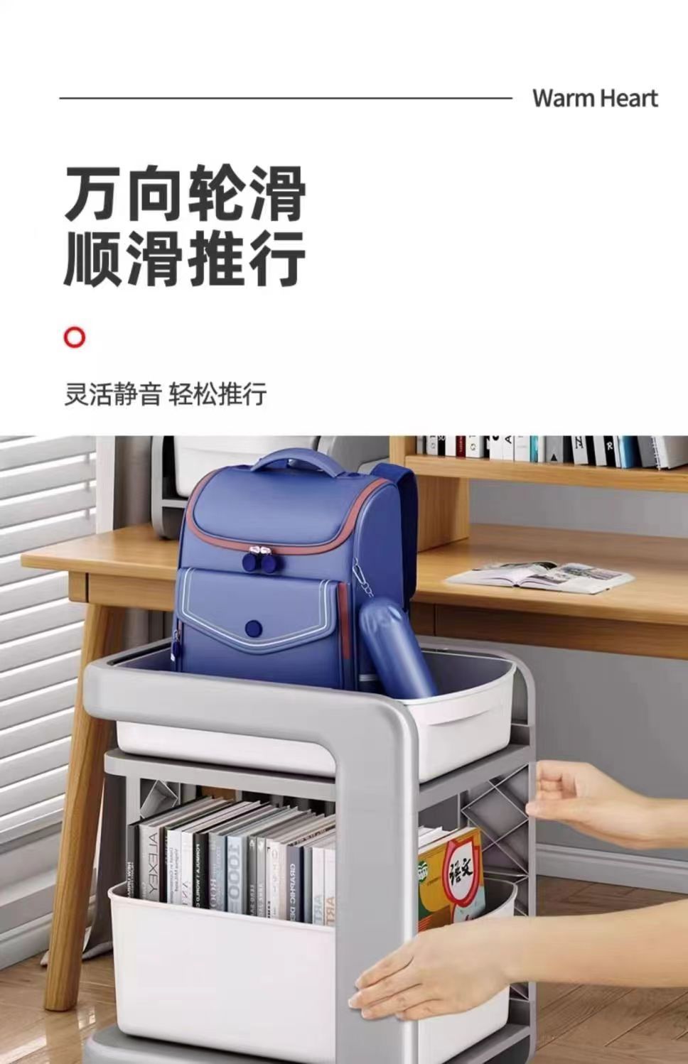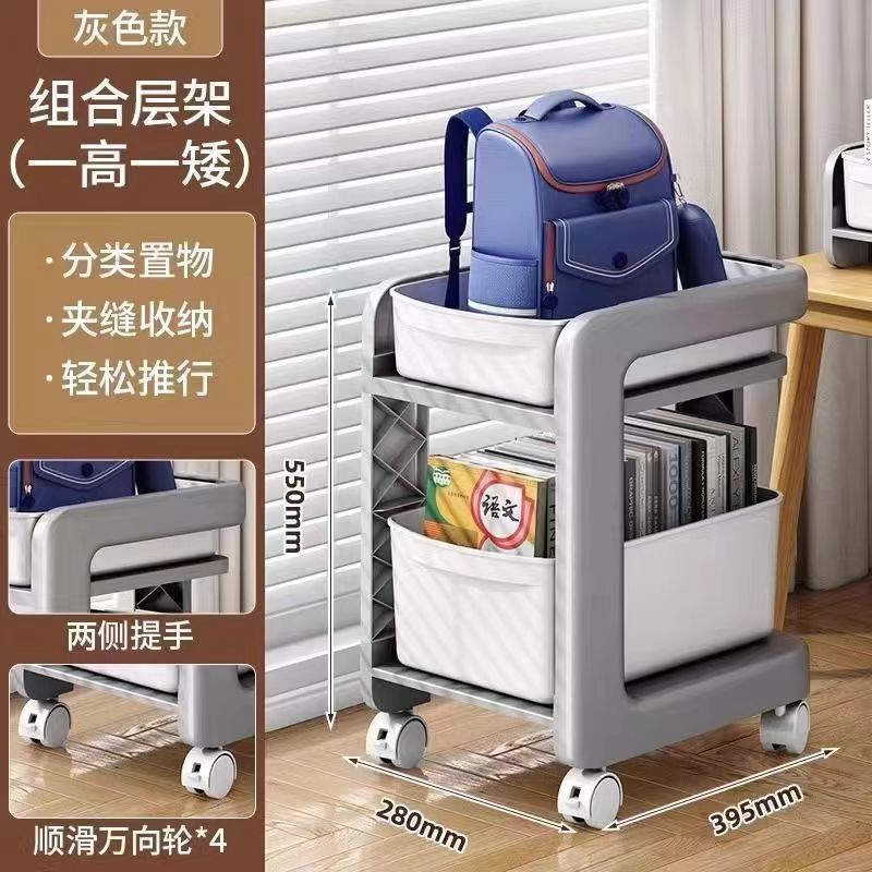 학교 가방 스토리지 랙 초등학생을위한 바퀴가 달린 모바일 트롤리 테이블 스토리지 랙 풋 랙 아래 책장 스터디 스토리지 랙