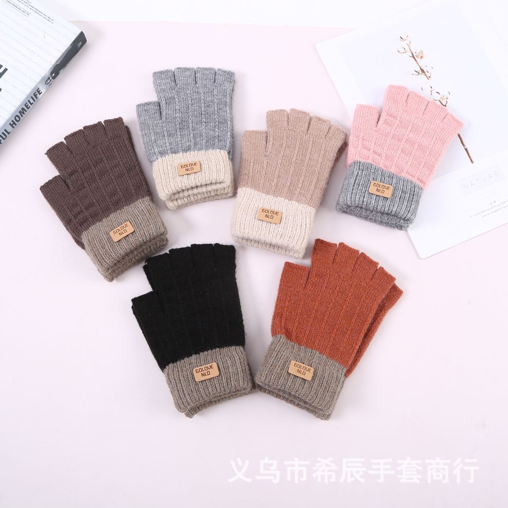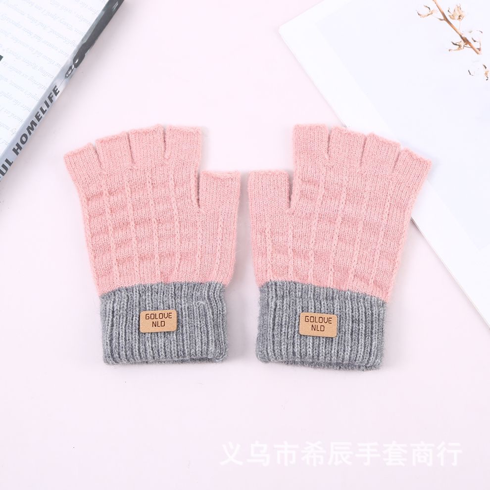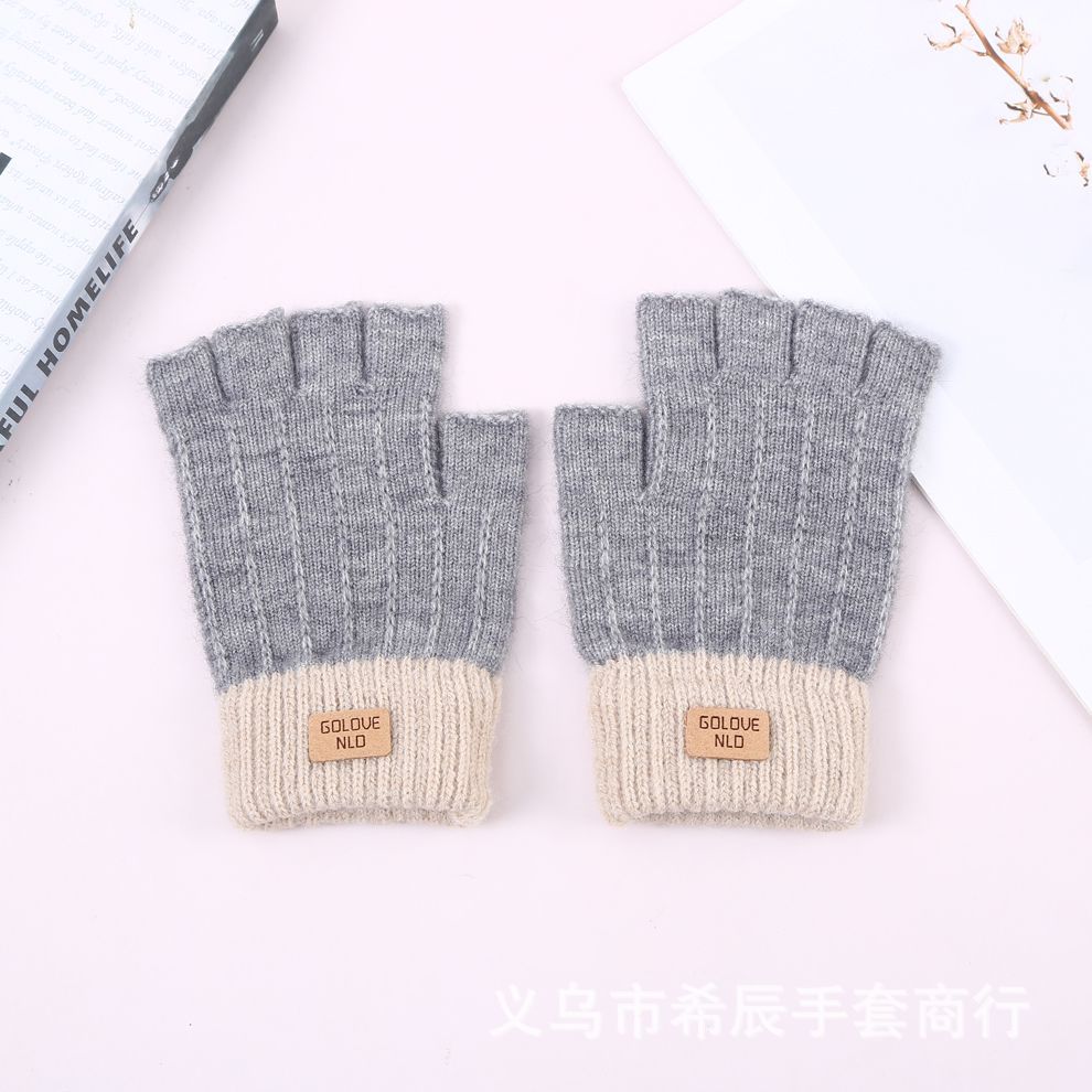 남학생과 여학생을위한 공장 직접 반 손가락 장갑 겨울 야외 자전거 장갑 따뜻한 니트 학습 글쓰기 장갑스토어 가기