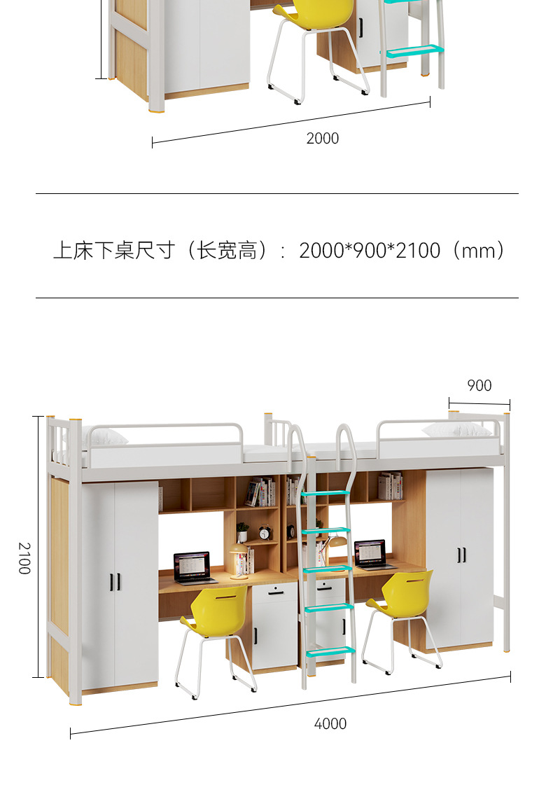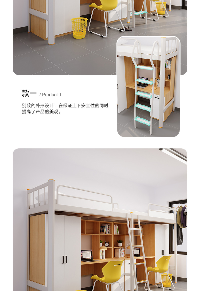 상단 침대 및 하단 테이블 침대 학생 직원 기숙사 옷장 책상 일체형 이층 침대 철제 프레임 침대 아파트 침대 맞춤 제작 제조업체스토어 가기