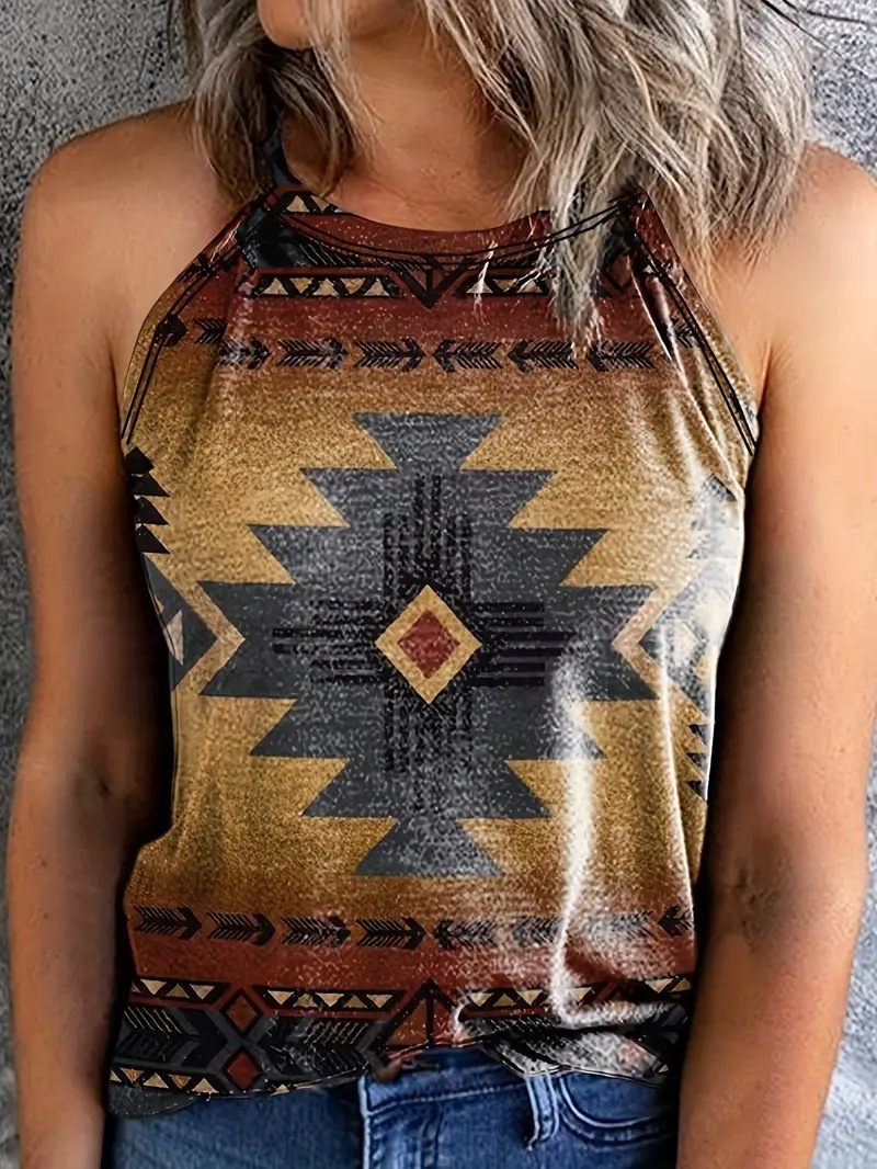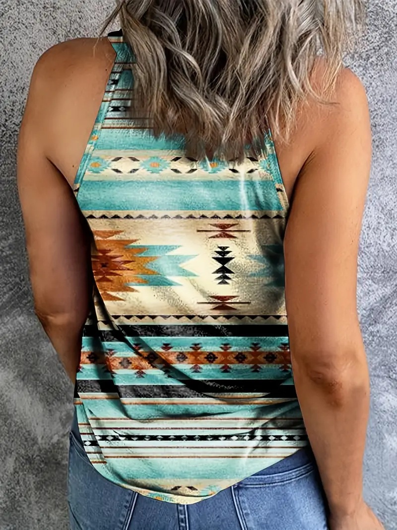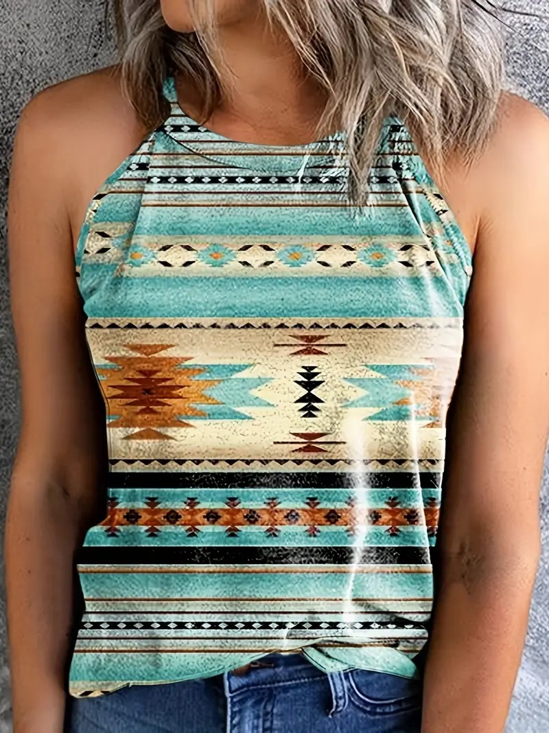 2024 봄과 여름 TEMU 아마존 국경 유럽과 미국의 새로운 여성의 캐주얼 인쇄 민소매 카미솔스토어 가기