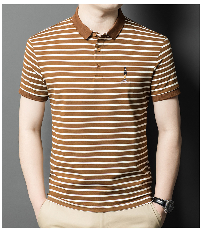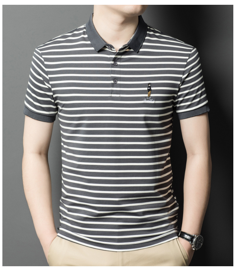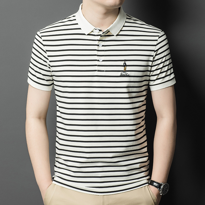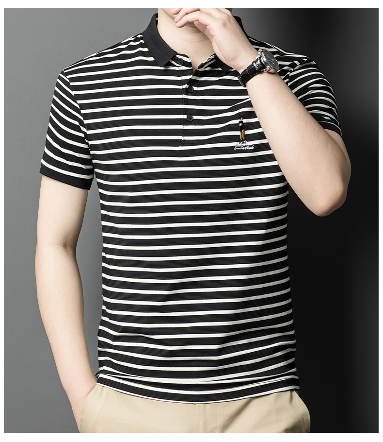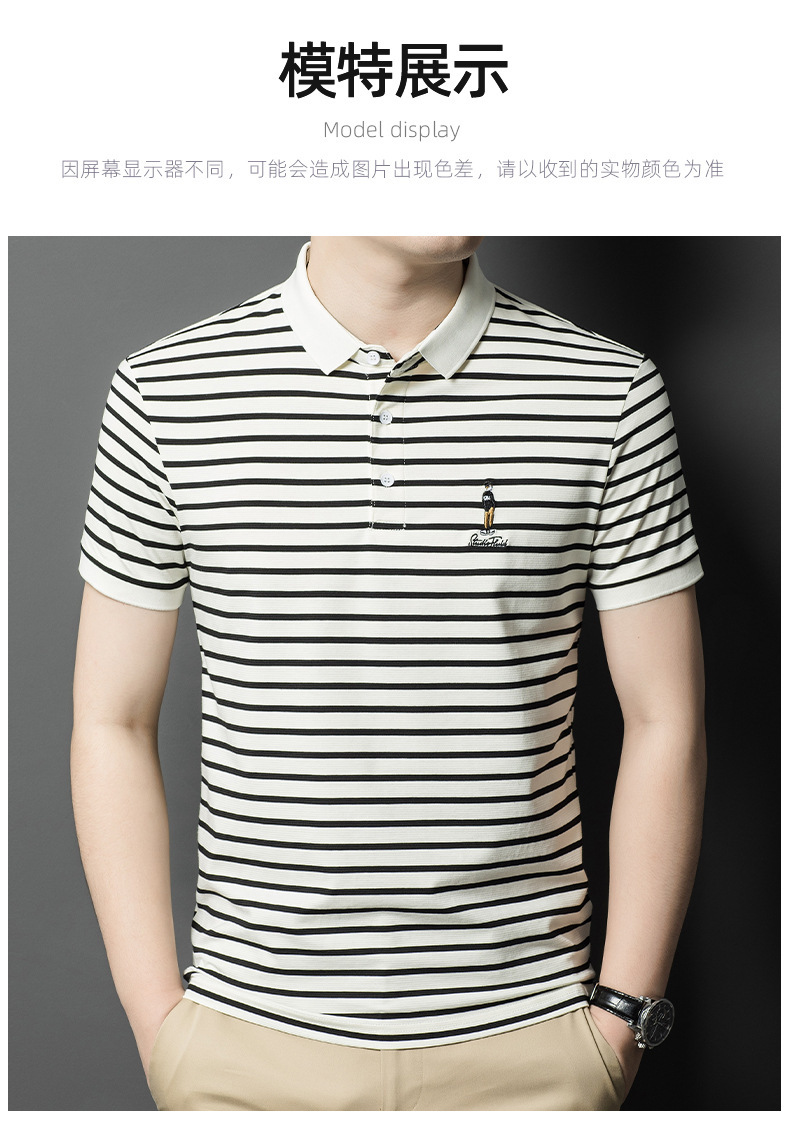 2024夏装新款条纹男士短袖t恤衫 时尚休闲翻领棉质韩版打底衫上衣