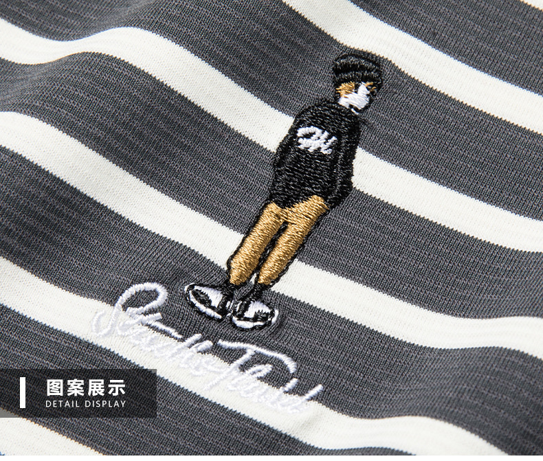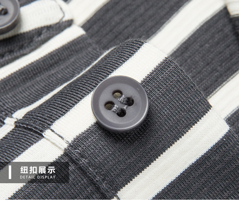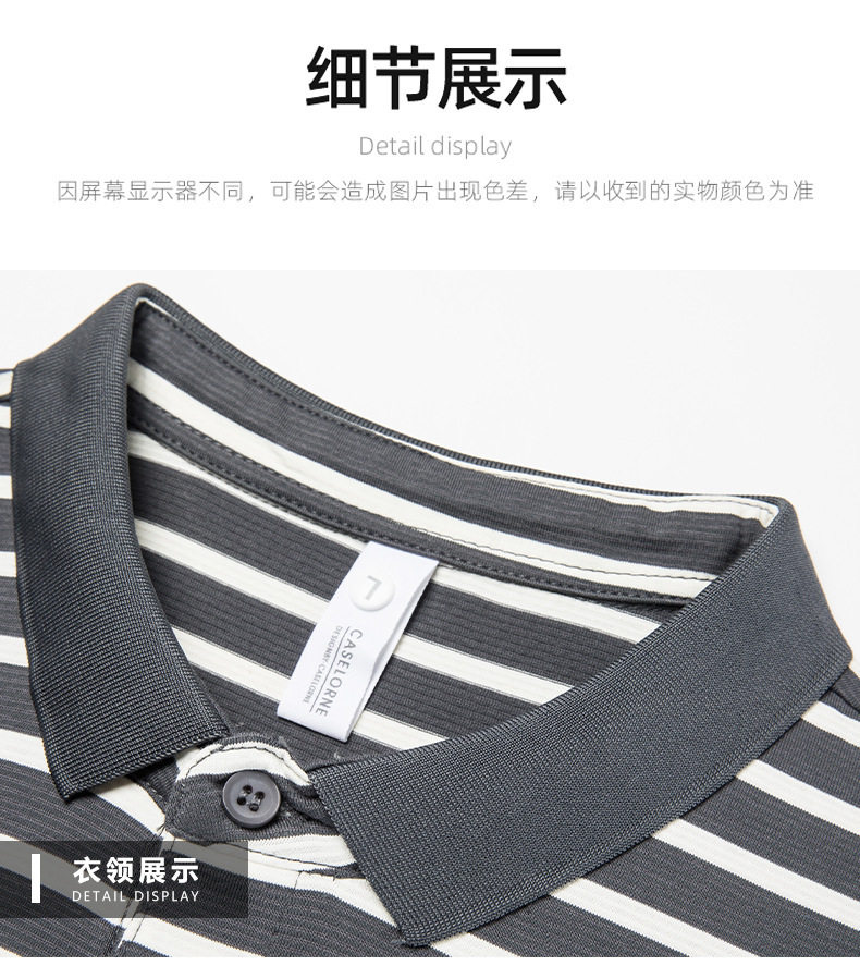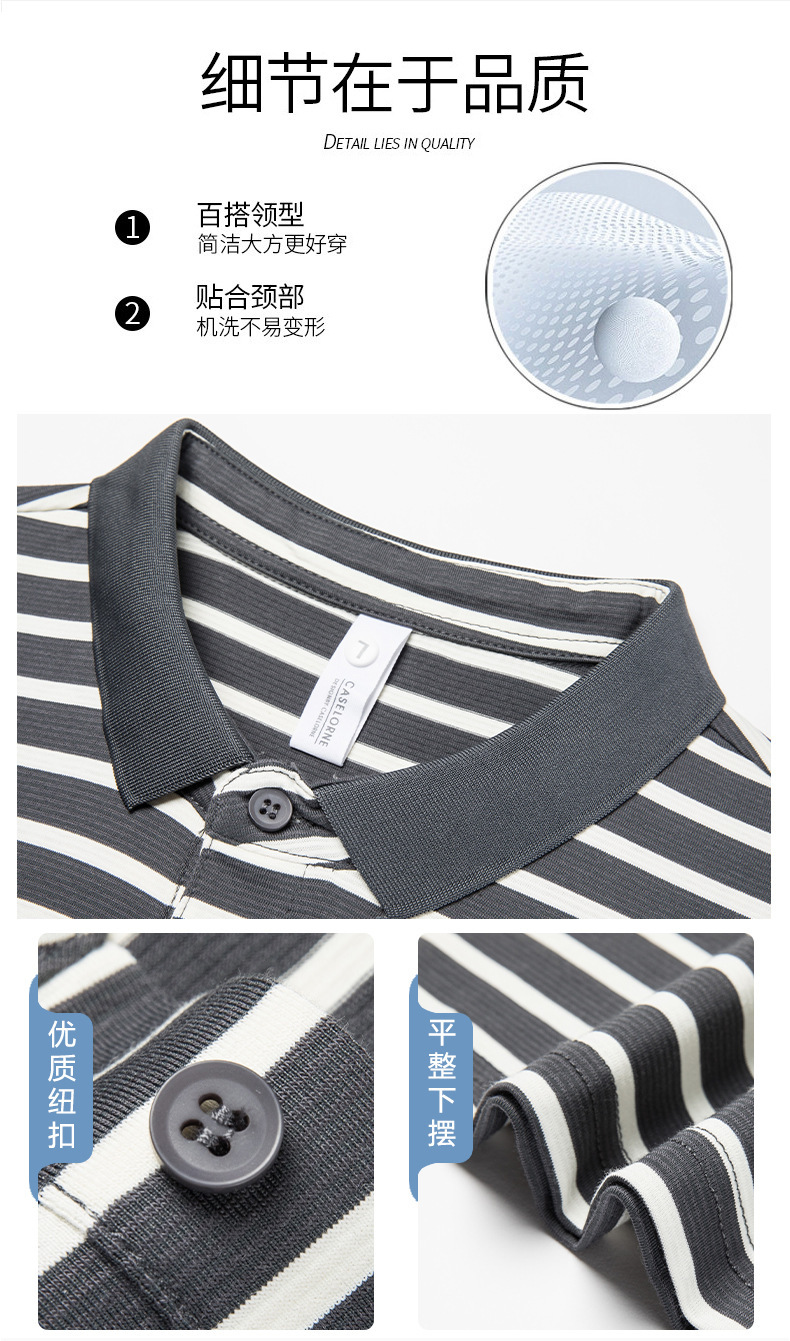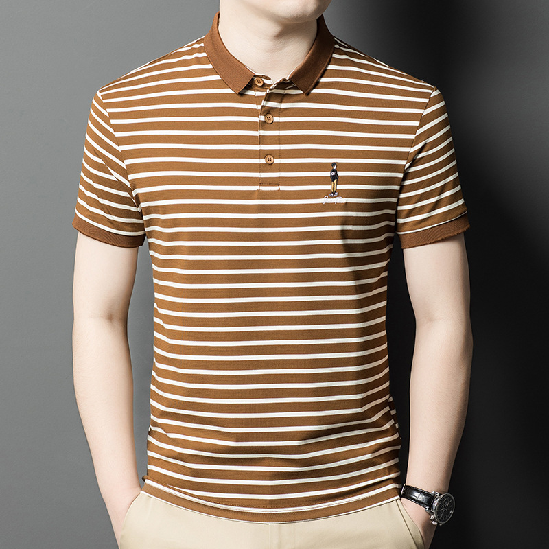 2024夏装新款条纹男士短袖t恤衫 时尚休闲翻领棉质韩版打底衫上衣