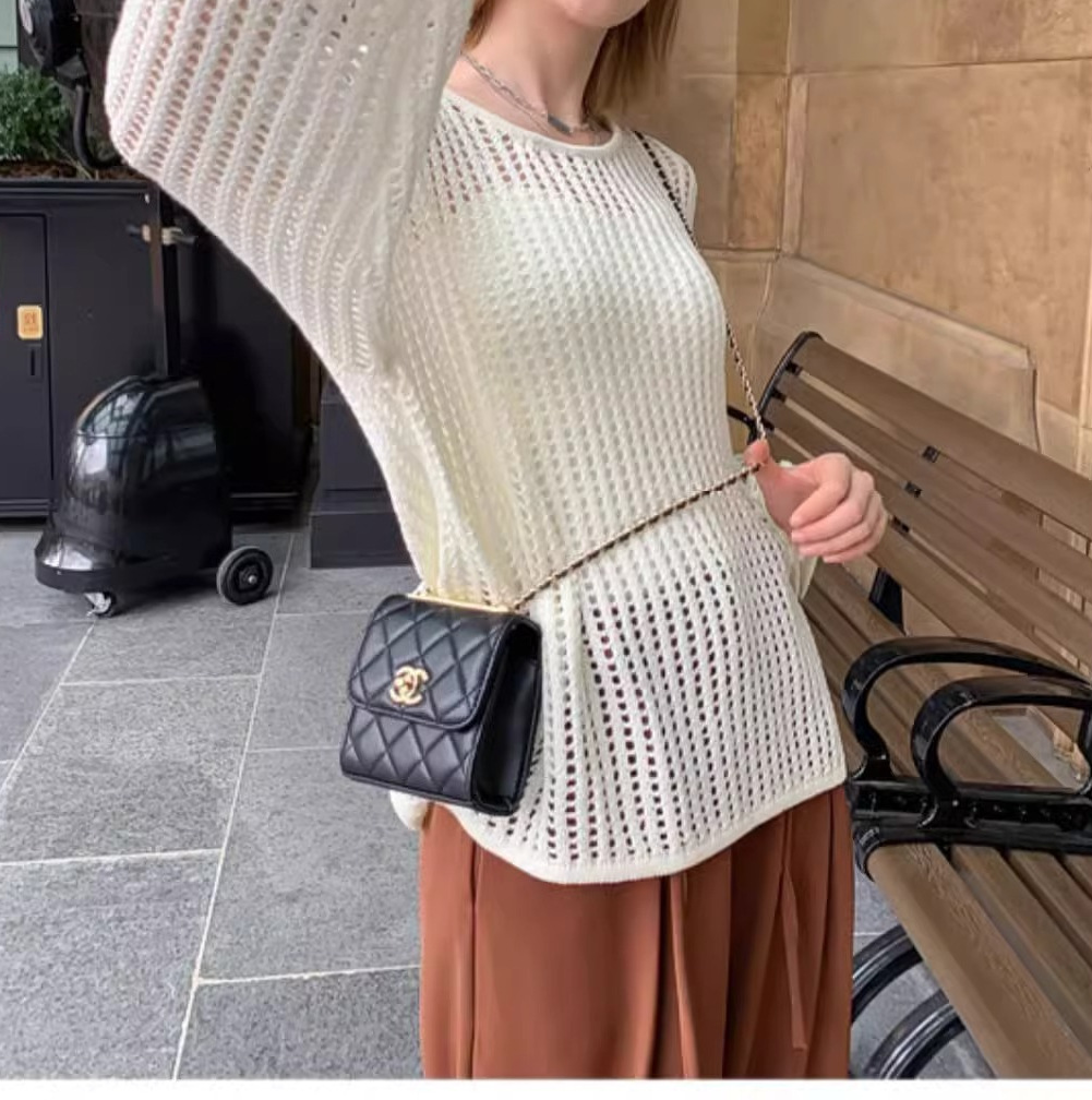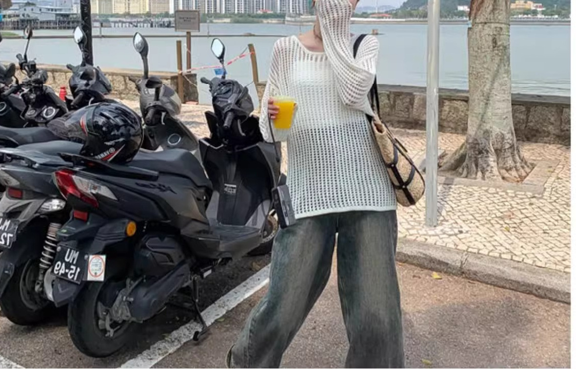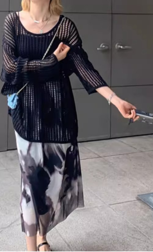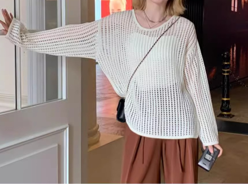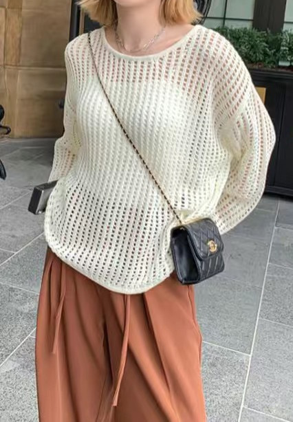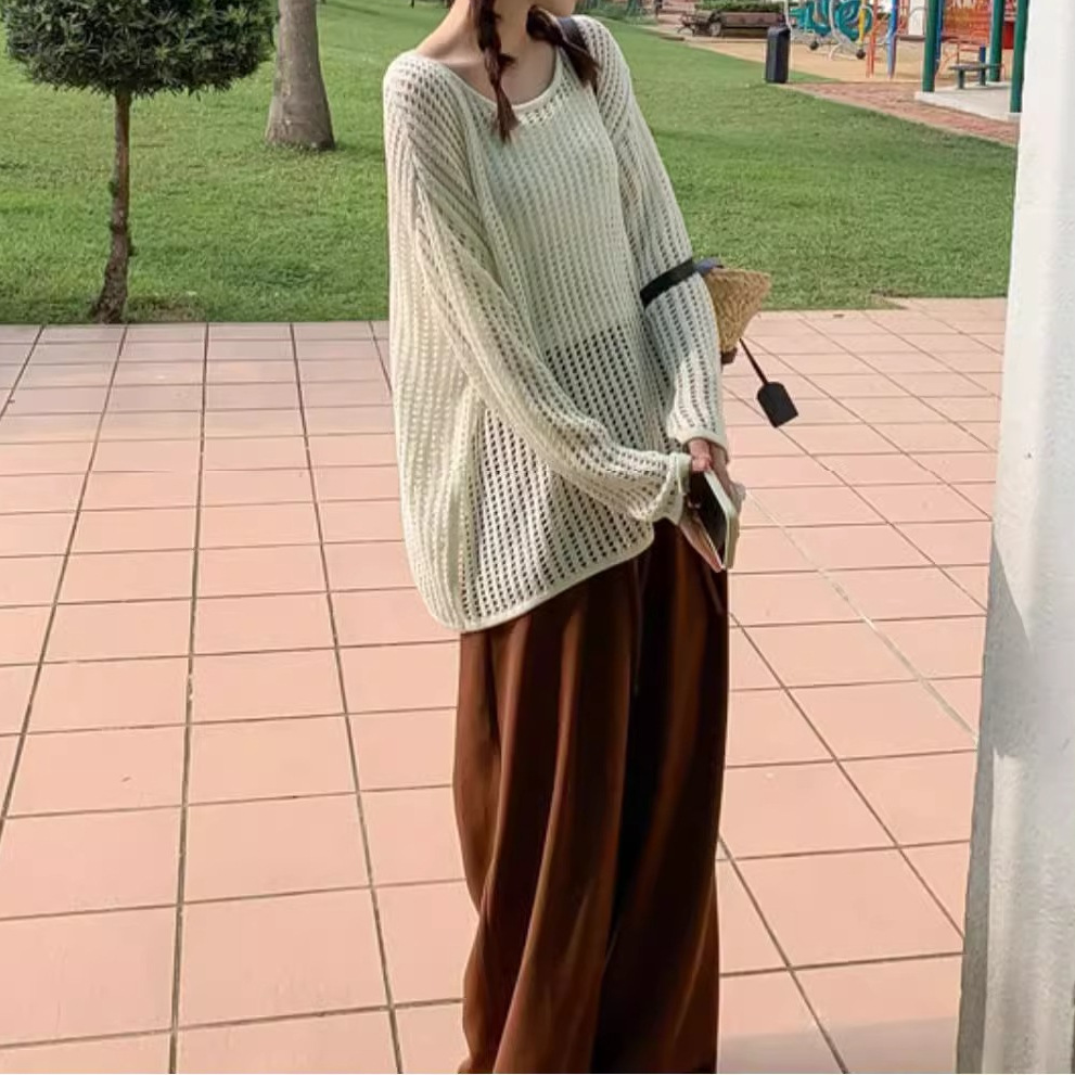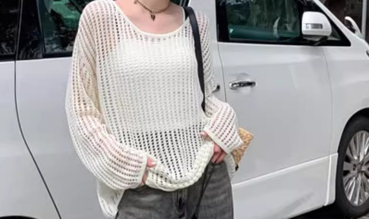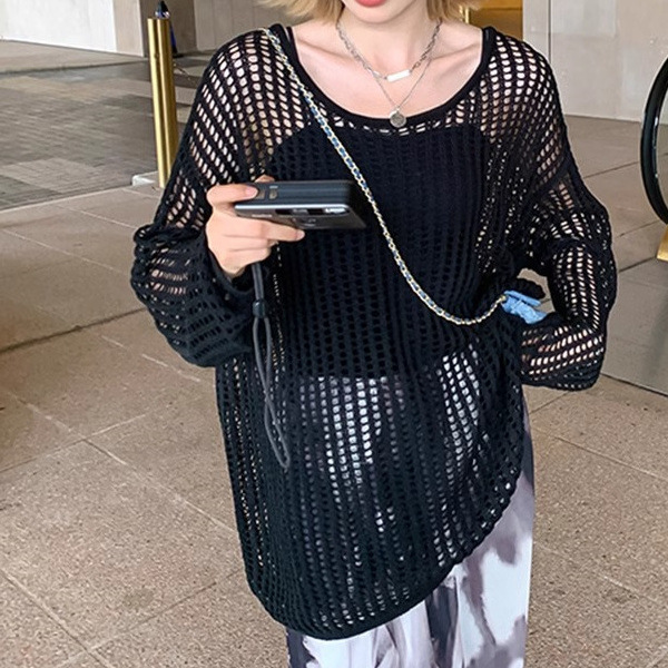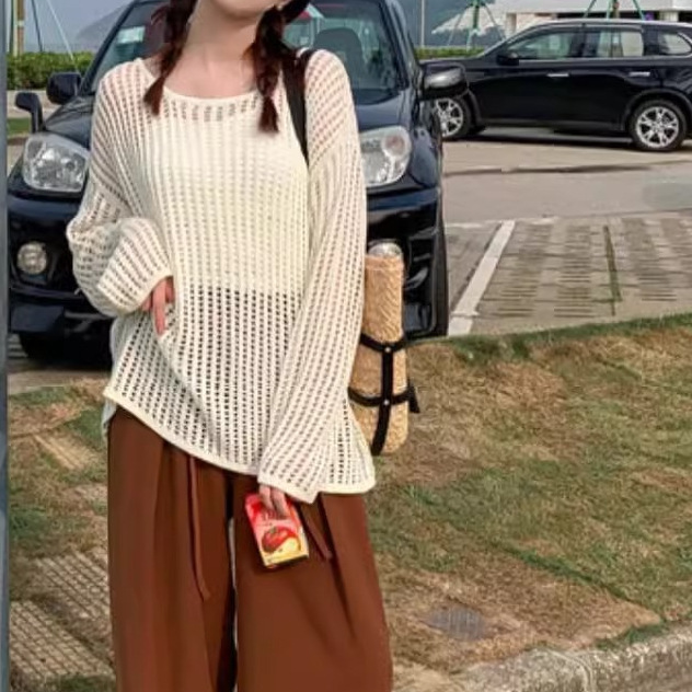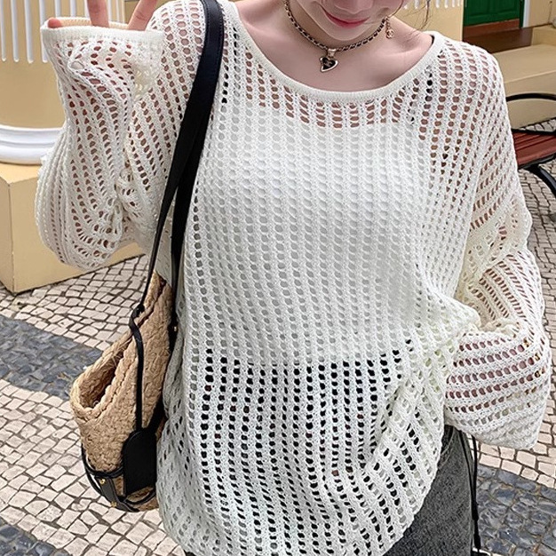 여성용 니치 메쉬 중공 니트 스웨터 2025 봄 여름 신상 브이넥 스윗걸 피쉬넷 자외선 차단 블라우스 홀 탑스토어 가기