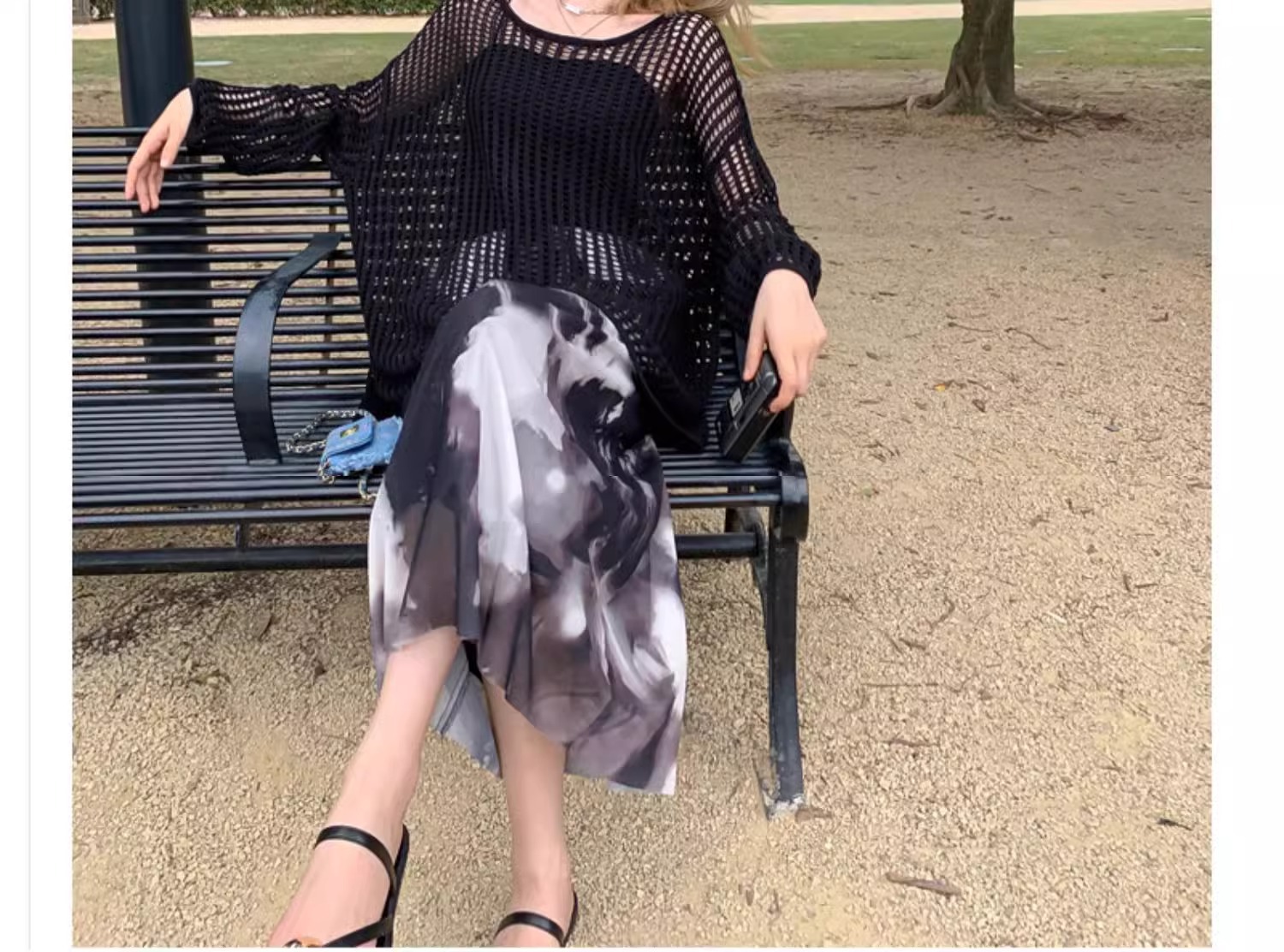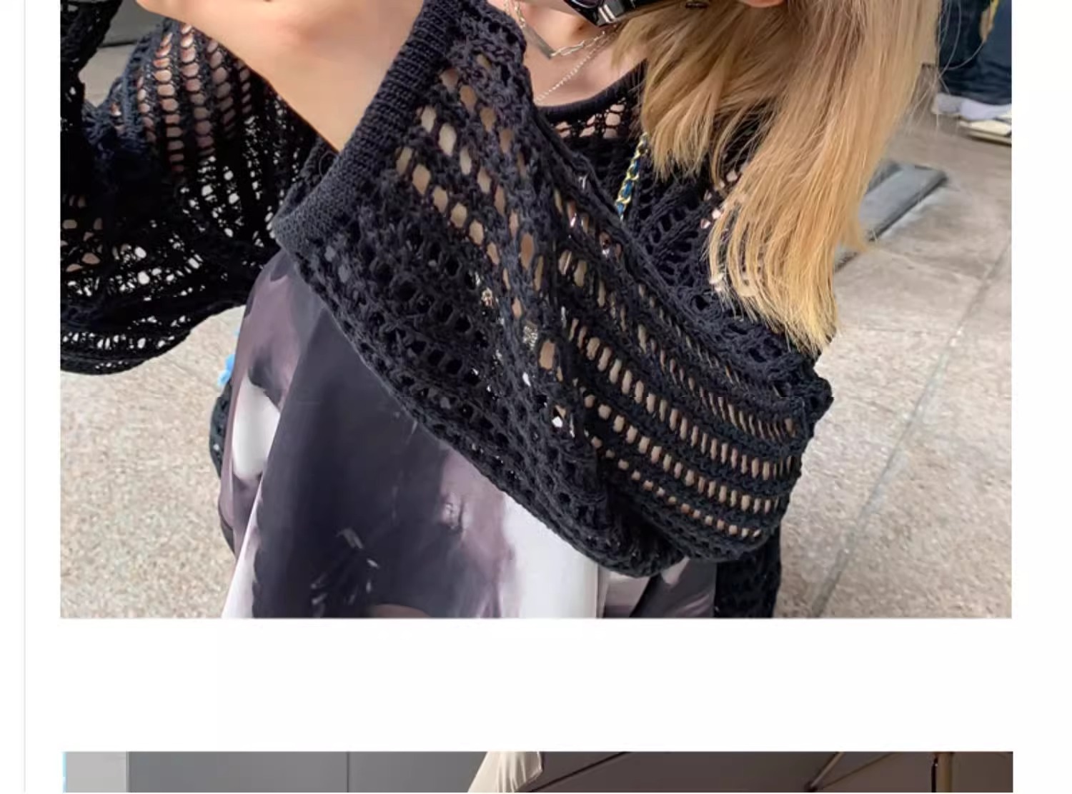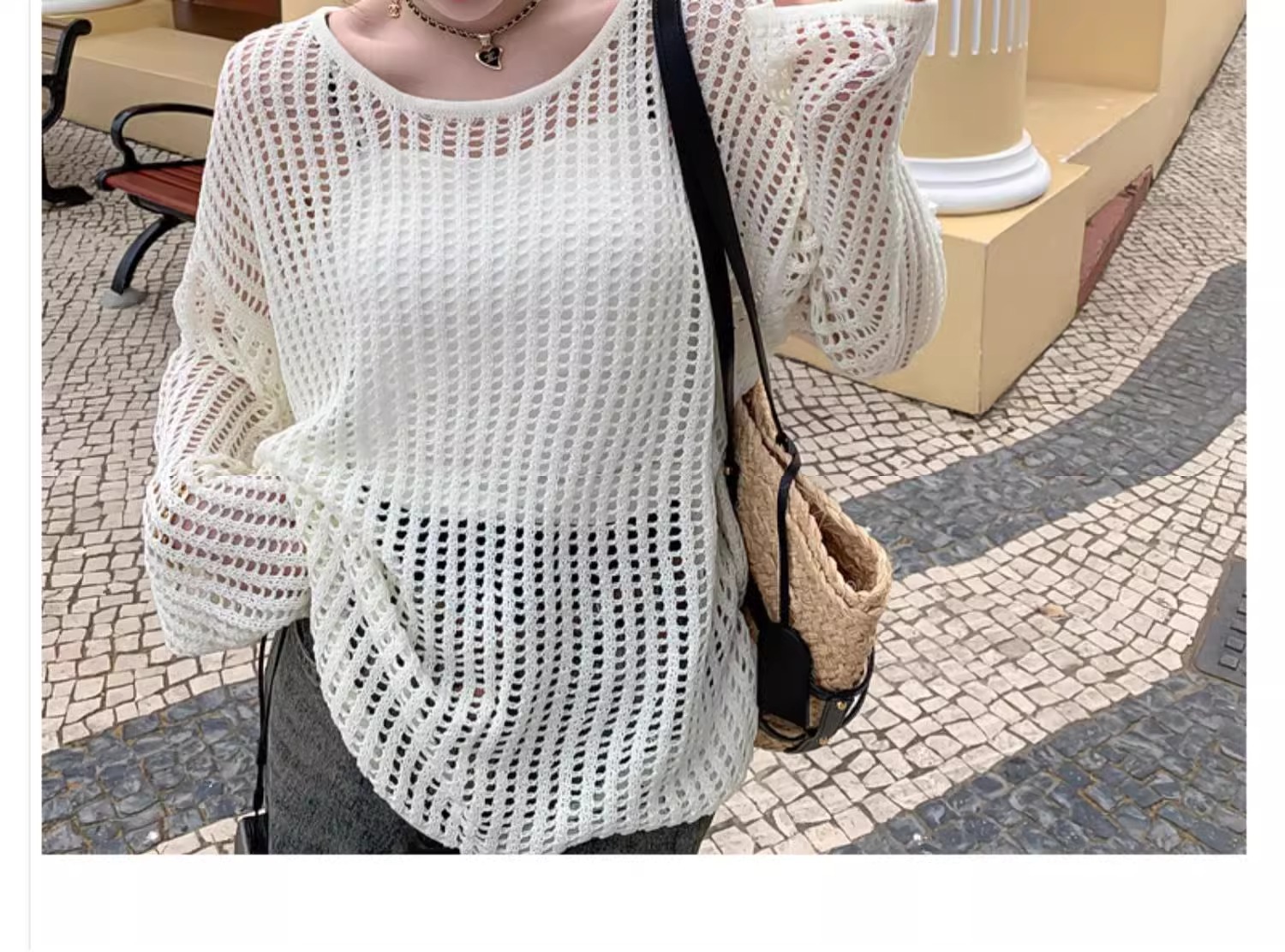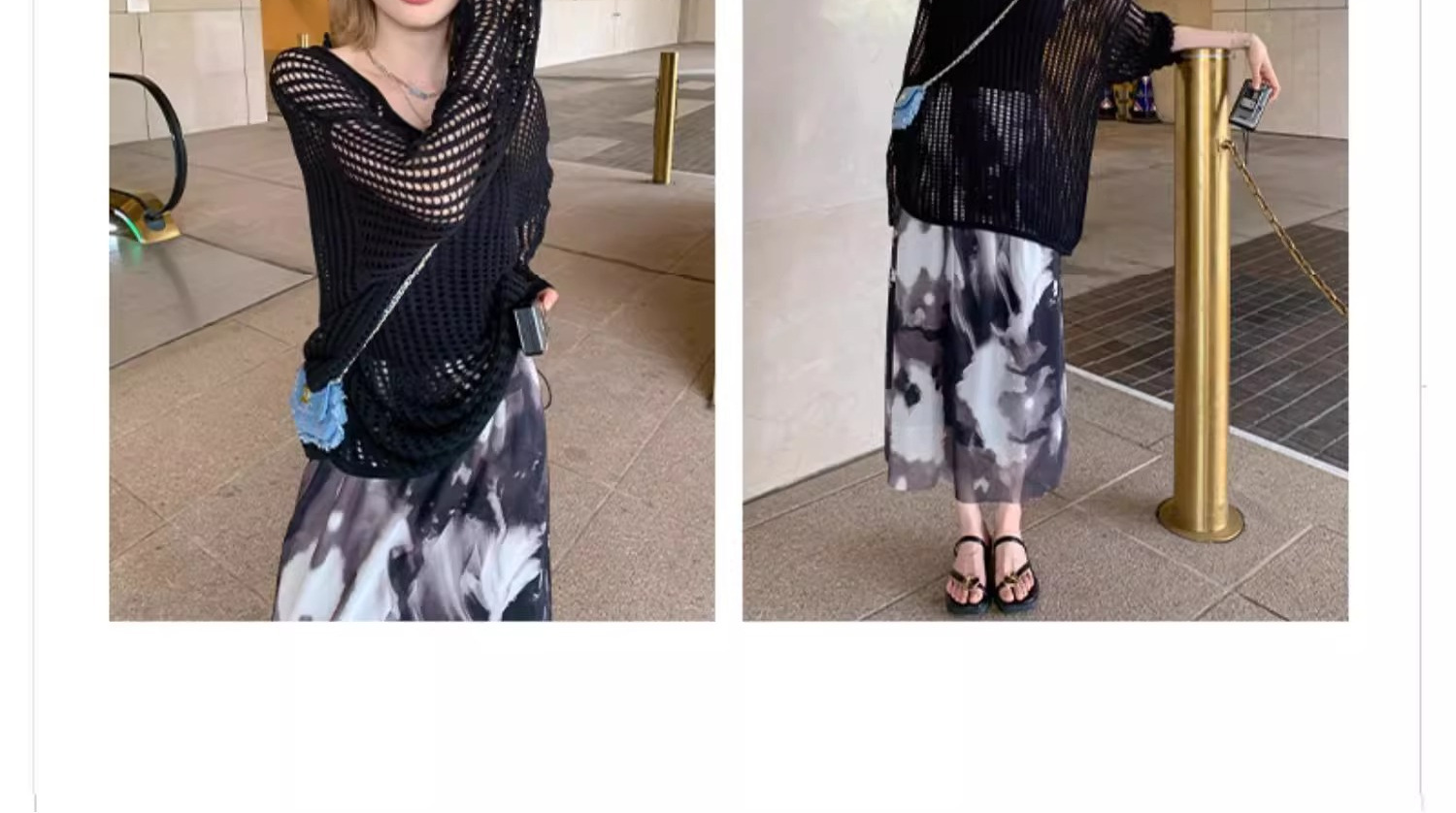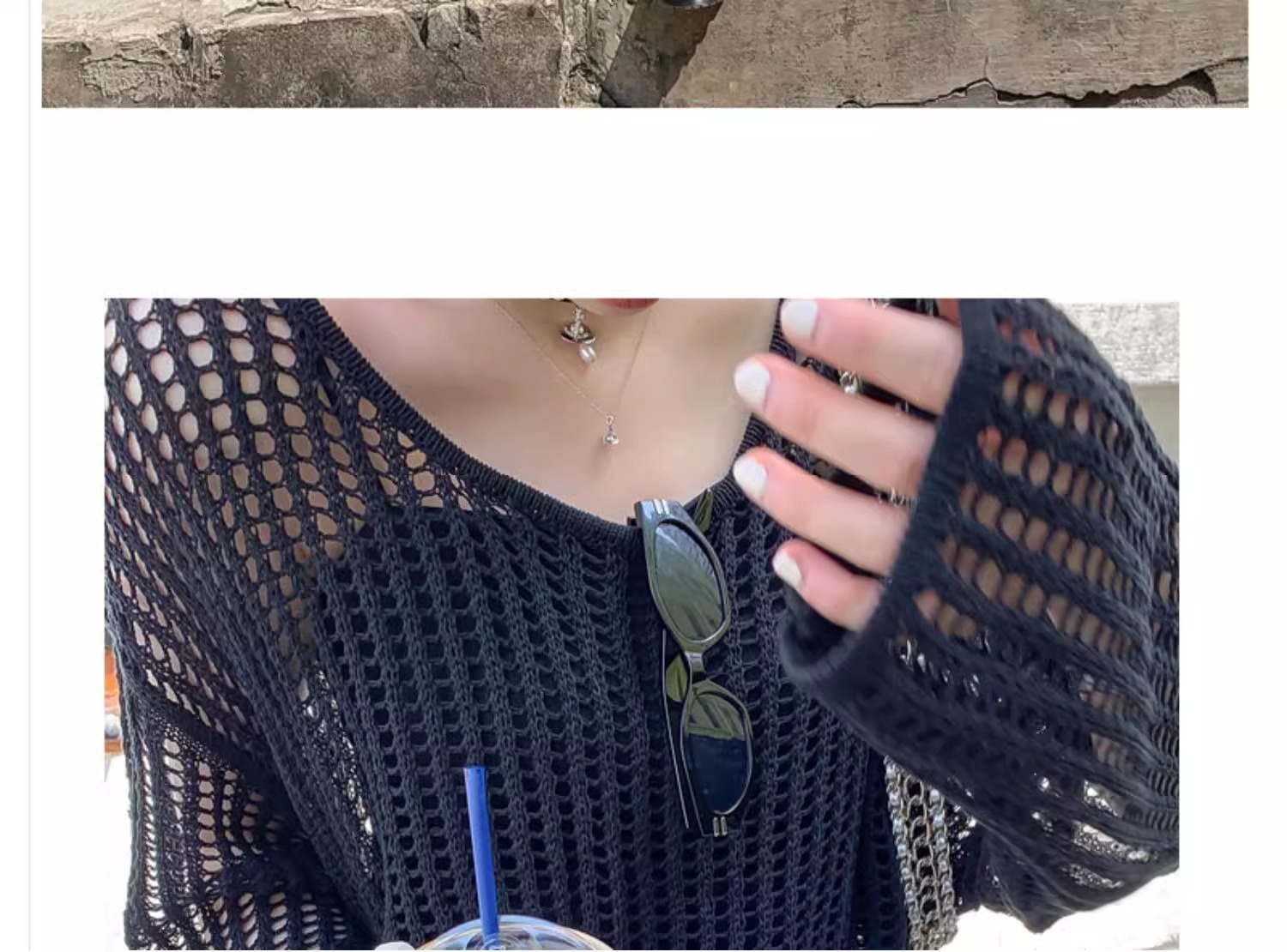 여성용 니치 메쉬 중공 니트 스웨터 2025 봄 여름 신상 브이넥 스윗걸 피쉬넷 자외선 차단 블라우스 홀 탑스토어 가기