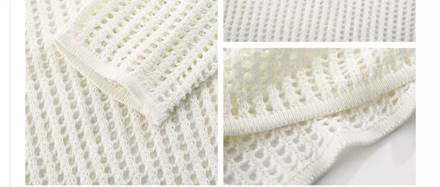 여성용 니치 메쉬 중공 니트 스웨터 2025 봄 여름 신상 브이넥 스윗걸 피쉬넷 자외선 차단 블라우스 홀 탑