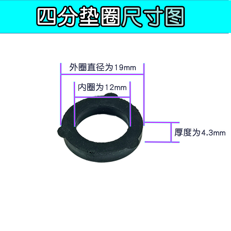 4分垫片,采用TPR材质,垫片内径为12.4mm,外径为18.5mm,厚4.3mm,净重0.694g,垫片尺寸为18.5*18.5*4.3mm,一包1000个,每包重700g。主图1.jpg