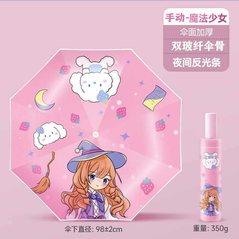• ☆.마법소녀-수동 [이중 뼈 유리 섬유 우산 꽂이 반사 스트립].