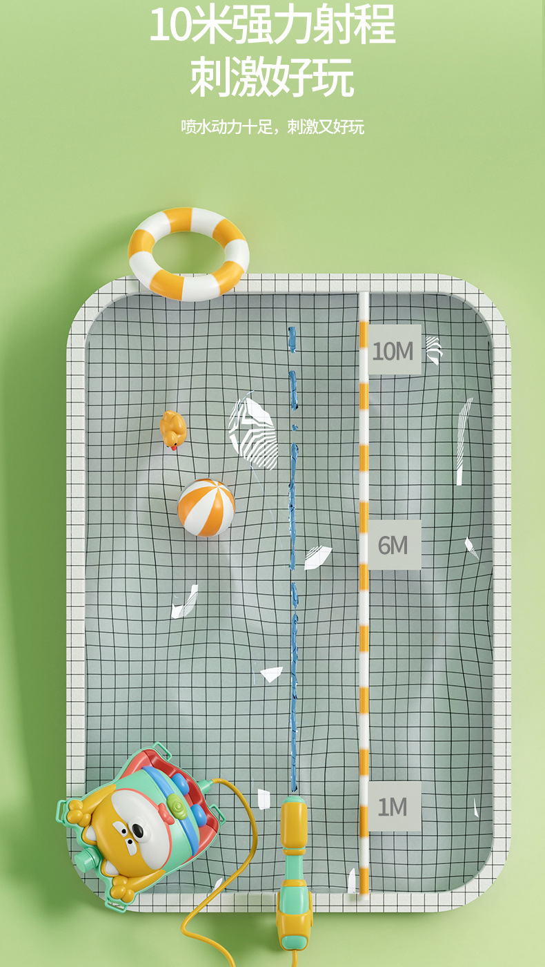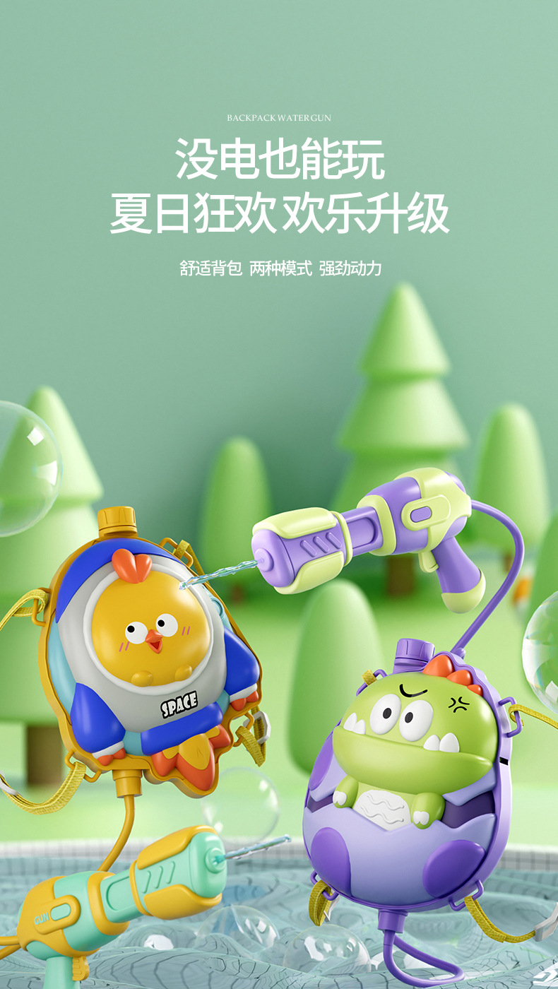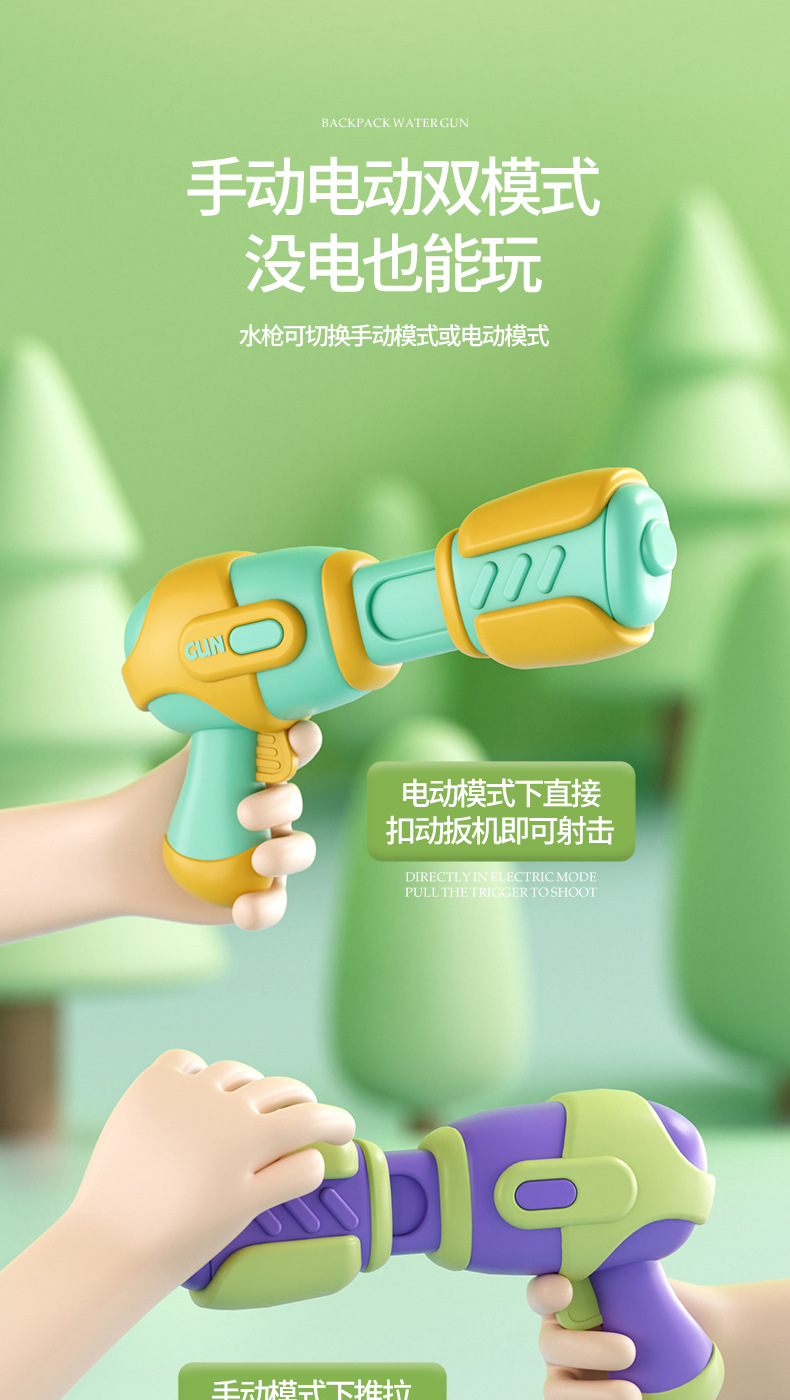 어린이 전기 손 자체 포함 된 만화 배낭 물 총 장난감 소년과 소녀 야외 물 싸움 대용량 물 총