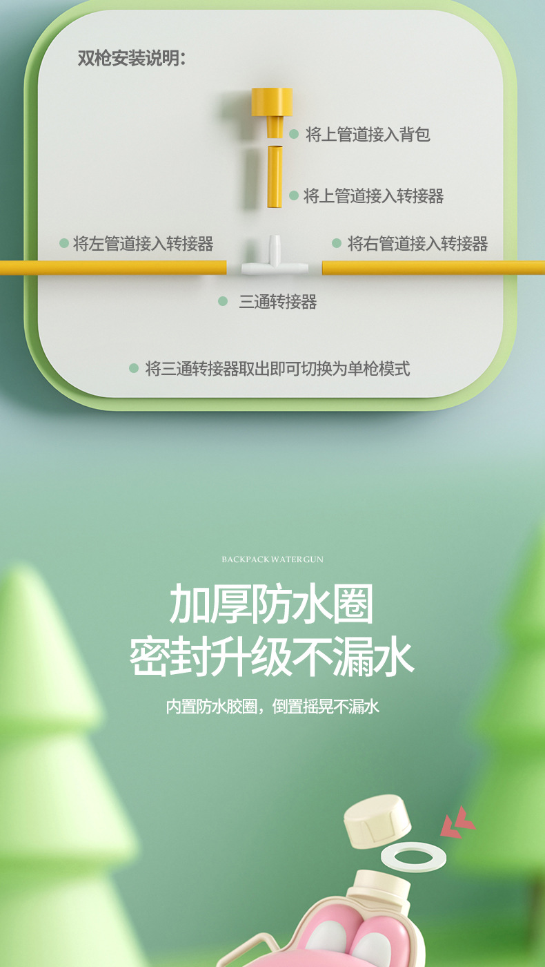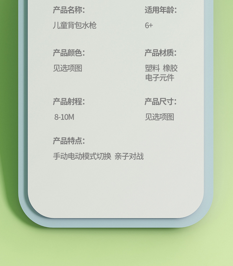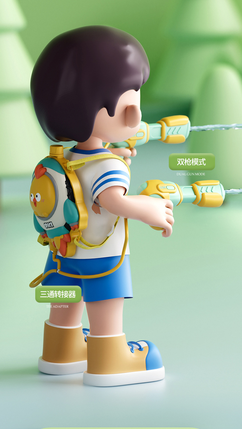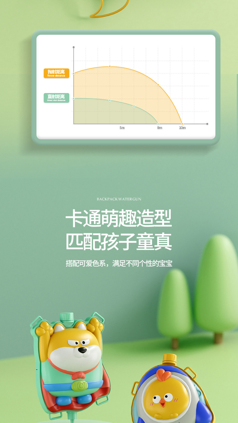 어린이 전기 손 자체 포함 된 만화 배낭 물 총 장난감 소년과 소녀 야외 물 싸움 대용량 물 총