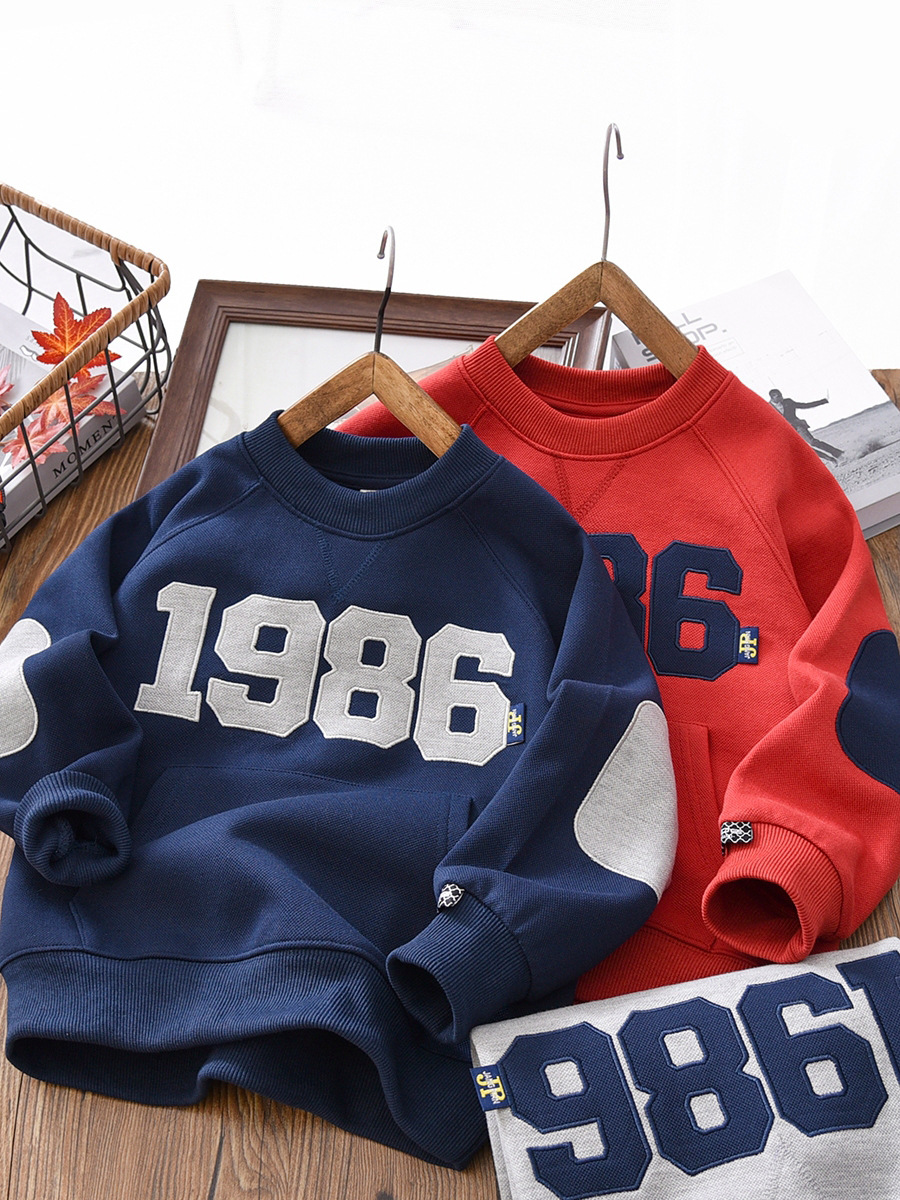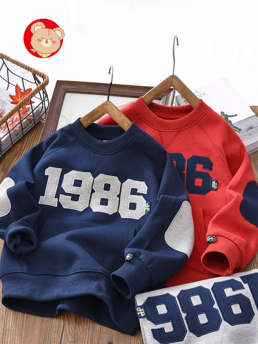 남아용 봄 라운드넥 스웨트셔츠 2025 신상 어린이 패치워크 디지털 스타일 상의 중대형 어린이용 다용도 풀오버스토어 가기