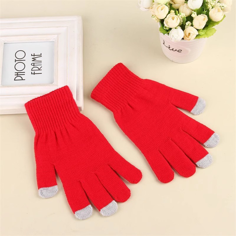 가을과 겨울 남성과 여성의 사이클링 및 운전 플러스 벨벳 패딩 풀 핑거 기질 니트 울 단색 따뜻한 마법 장갑스토어 가기