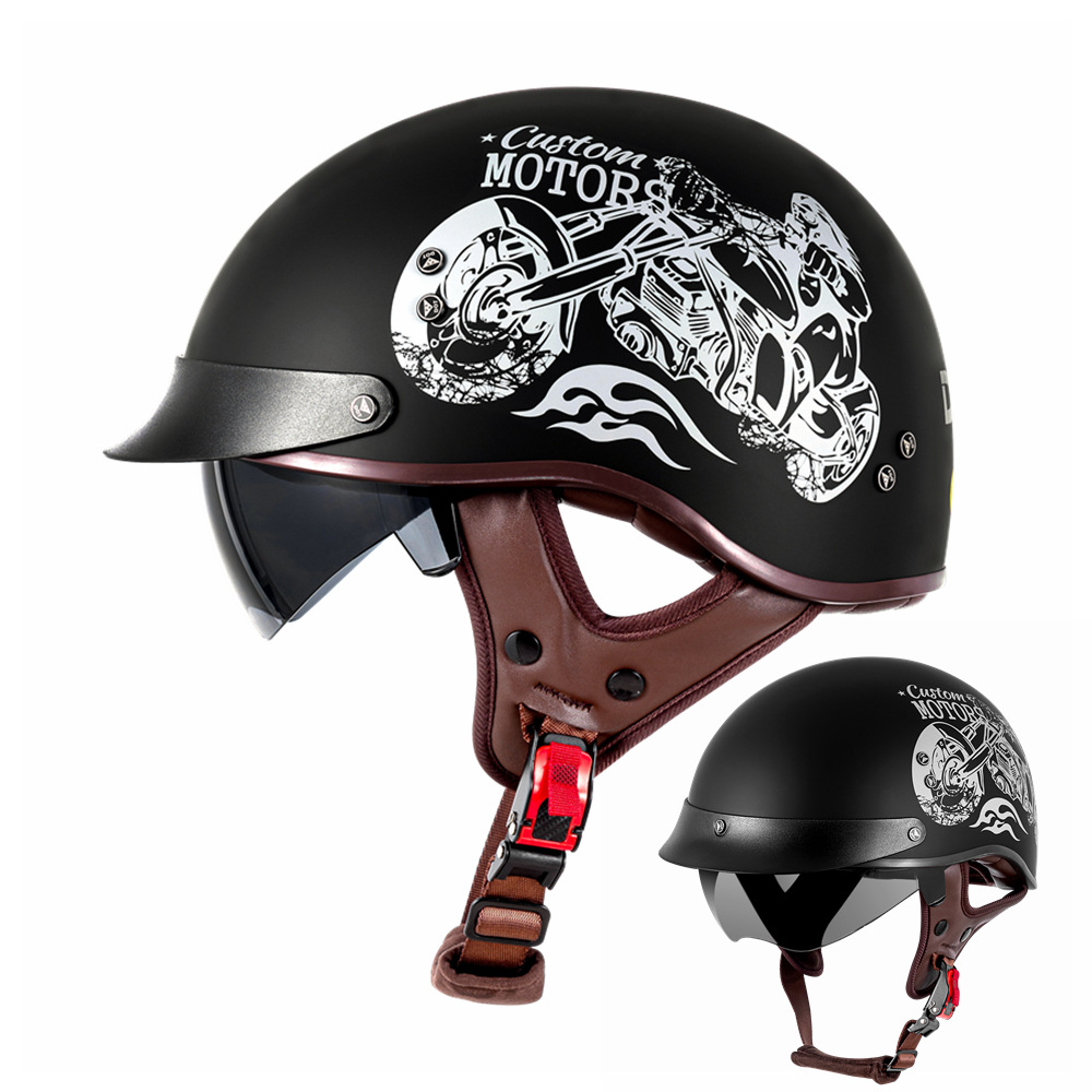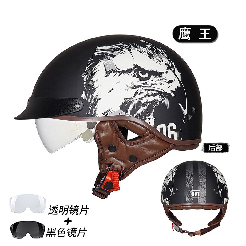 인기 폭발! 즉시 배송 도매 오토바이 헬멧 레트로 하프 헬멧 남녀공용 사계절 라이딩 안전 헬멧 멋짐