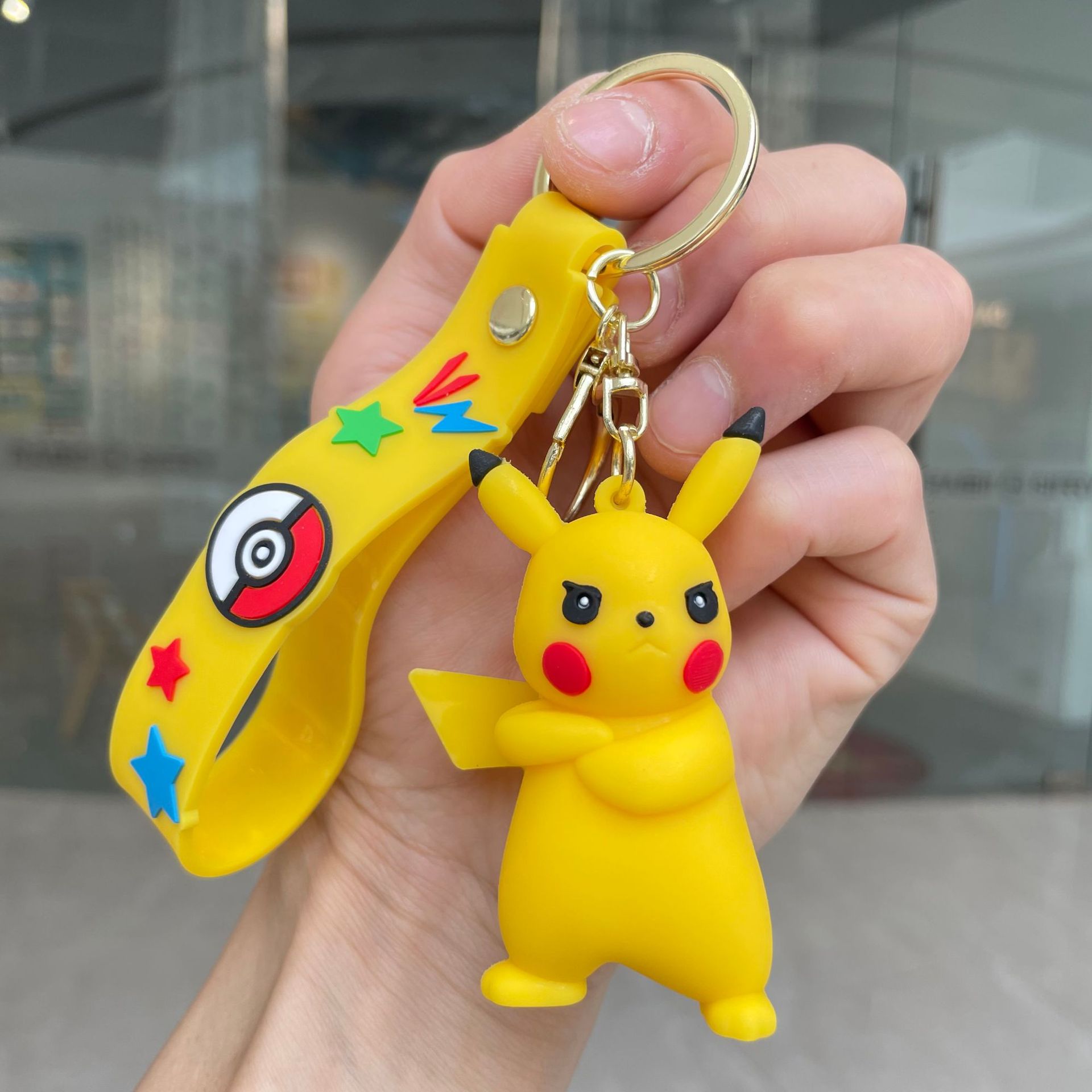Pokémon Baokemeng 키 체인 학교 가방 펜던트 피카추 인형 자동차 키 체인 잡아 인형 작은 선물스토어 가기
