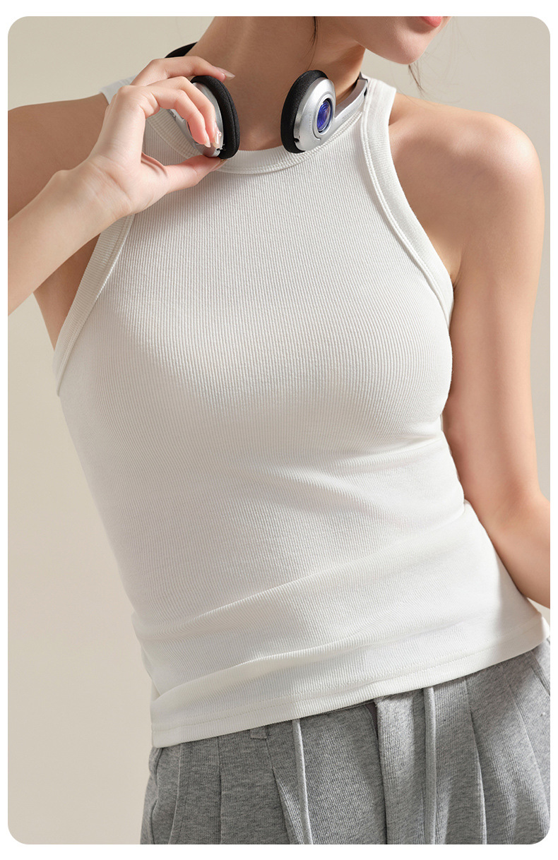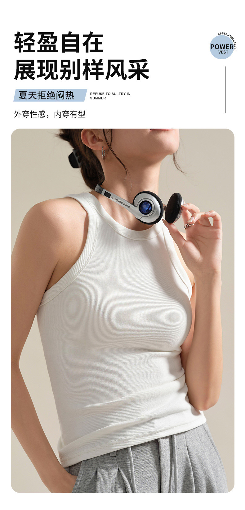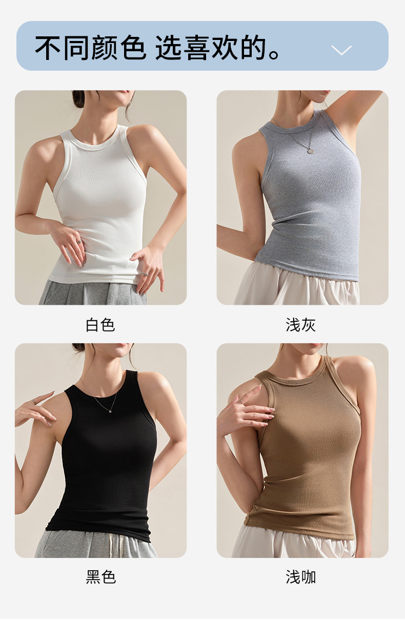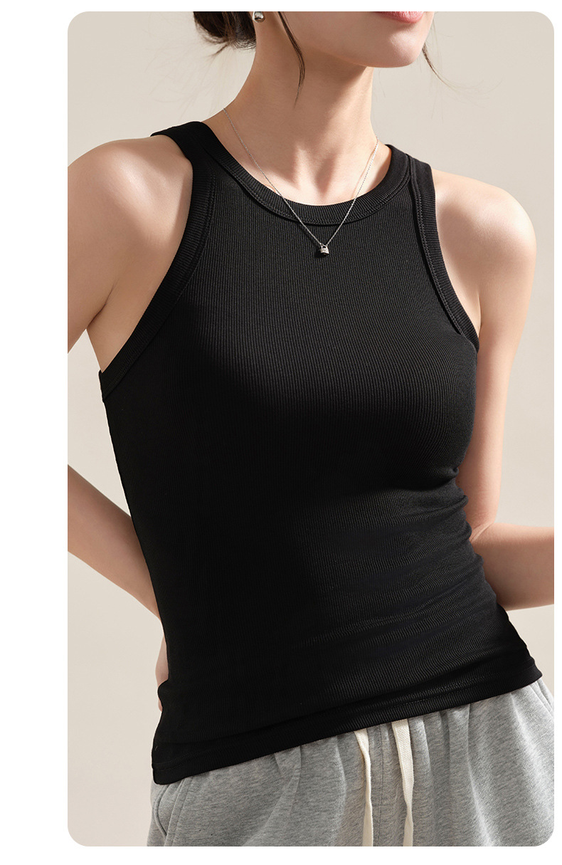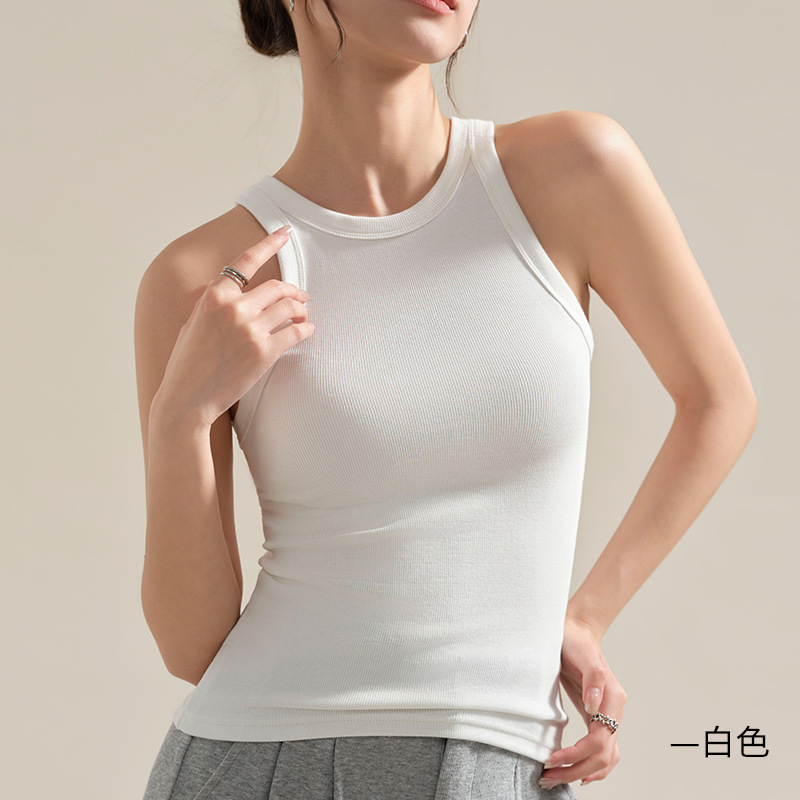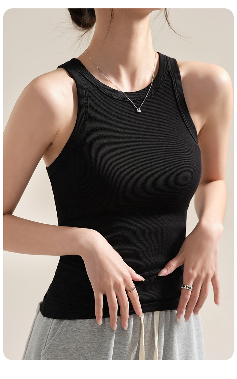 카미솔베이스 셔츠 여성용 2024 년 이른 봄 라운드 넥 스레드 민소매 티셔츠 커버 파라미리스 세트 내부 재킷 얇은스토어 가기