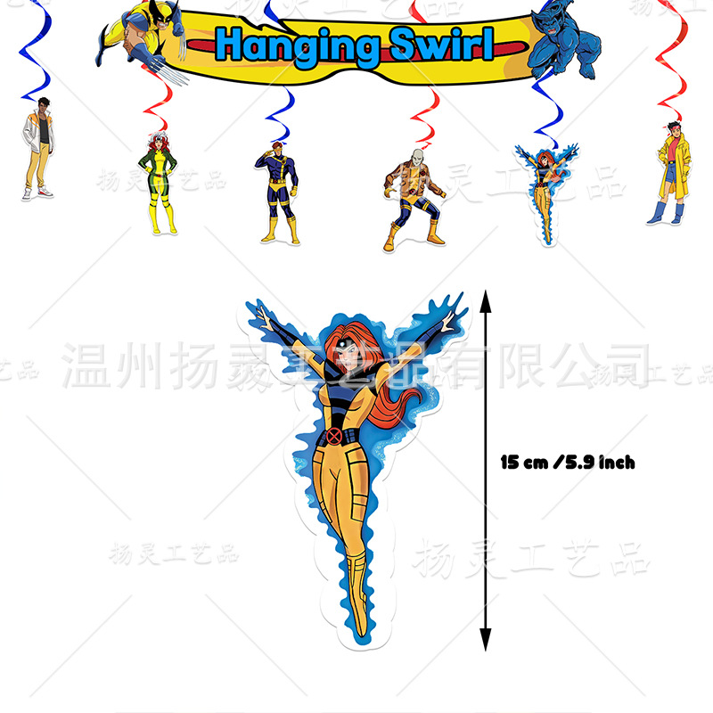 1 set Party Spirals Decor (6 Hanging Cards+6 Single Spirals: 3 Red and 3 Blue)