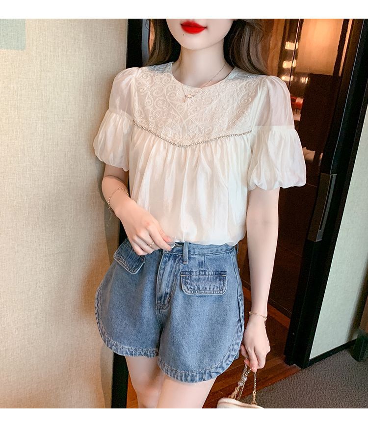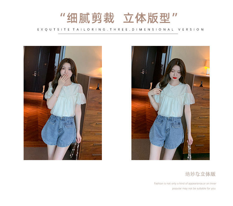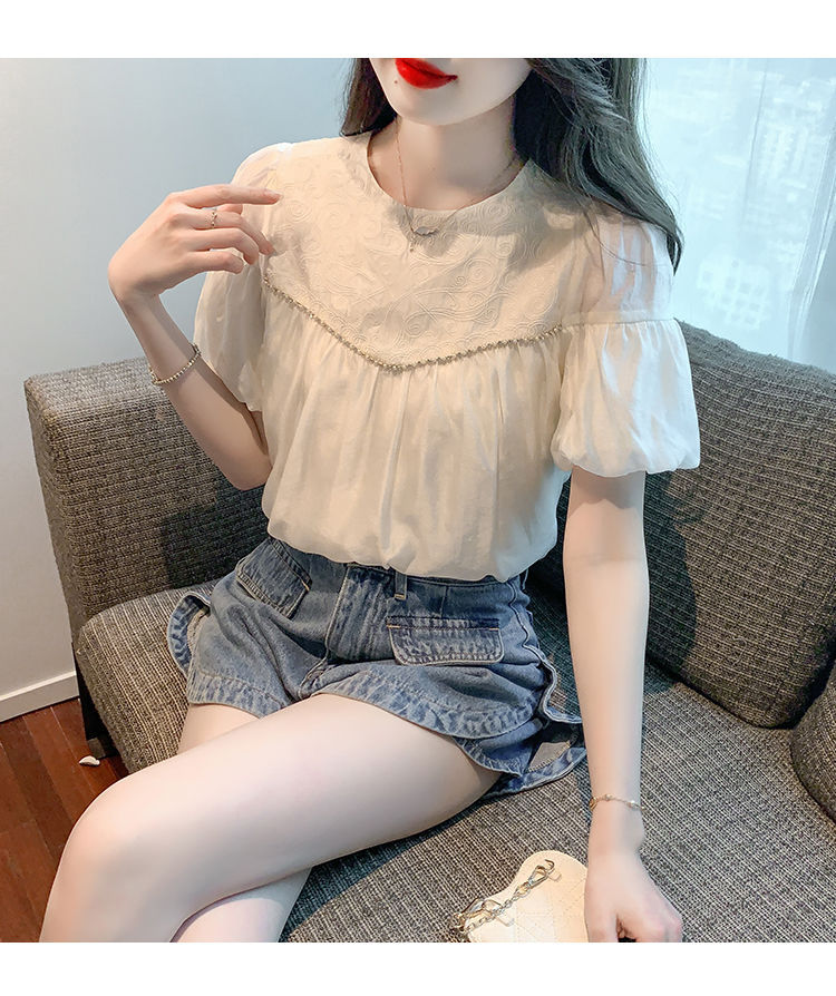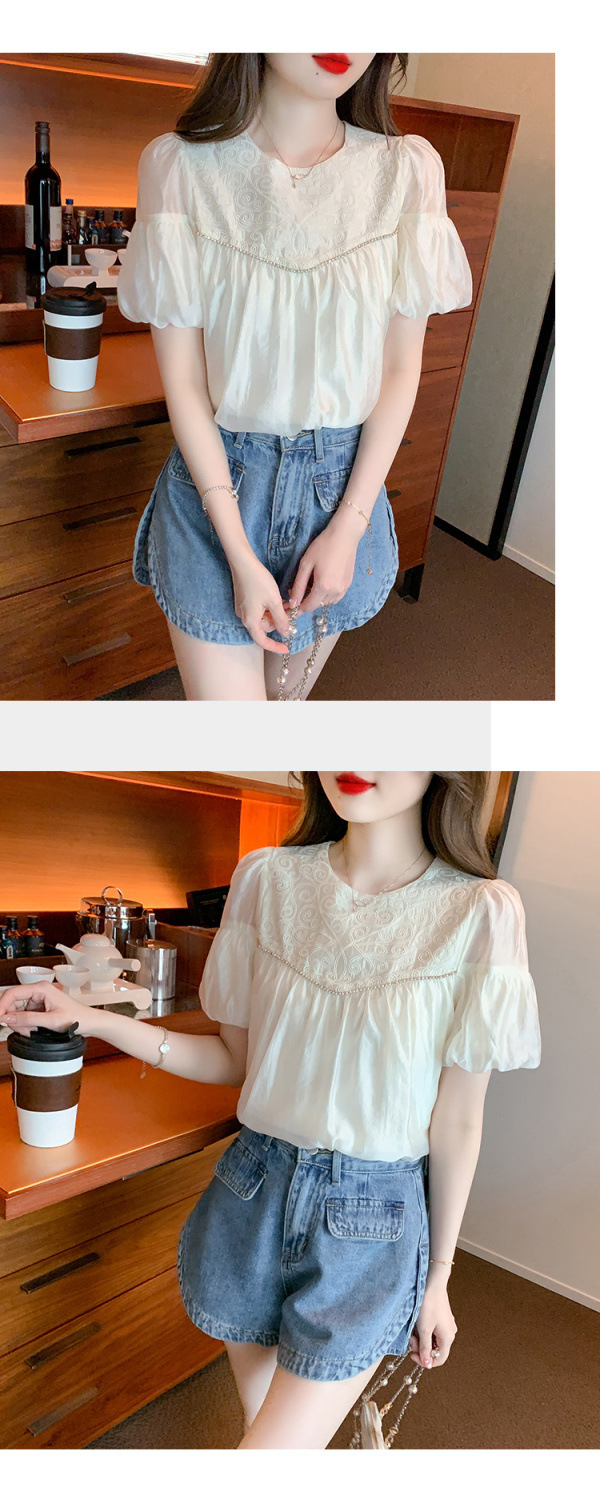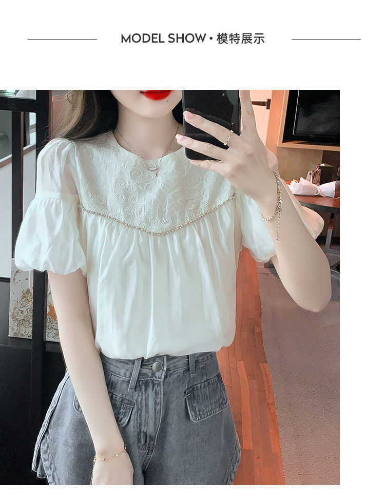 2024 여름 새로운 빈티지 버블 슬리브 쉬폰 셔츠 여성 디자인 센스 니쉬 외국식 시대 감소 셔츠 탑스토어 가기