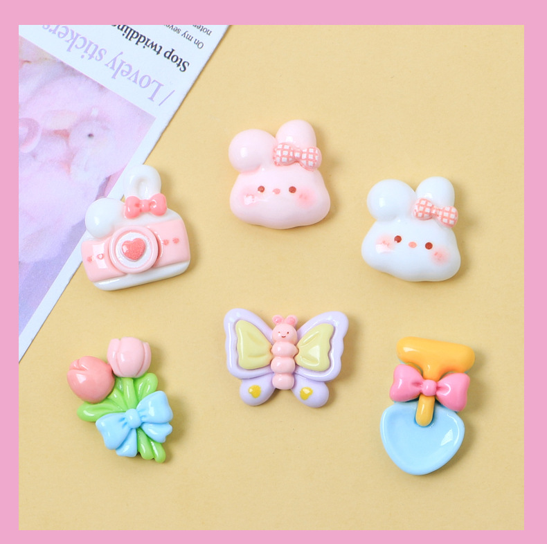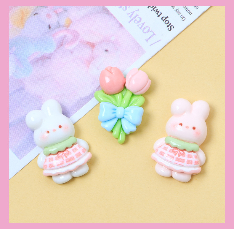 핑크 흰 토끼 만화 크림 접착제 액세서리 구멍 신발 버클 소재 수지 액세서리 diy 보석 헤어 클립 도매스토어 가기
