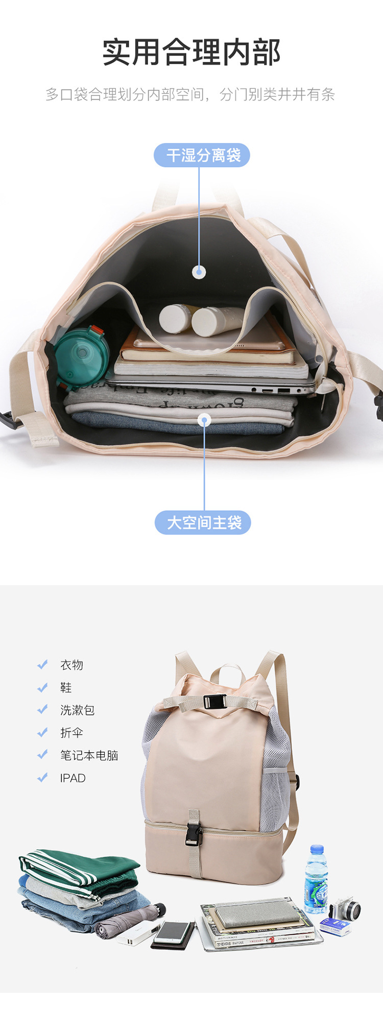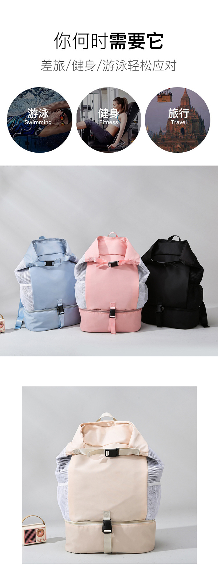 휴대용 수영 가방 건조하고 젖은 분리 스포츠 피트니스 남성 수영복 보관 가방 방수 가방 여성용 비치 배낭스토어 가기